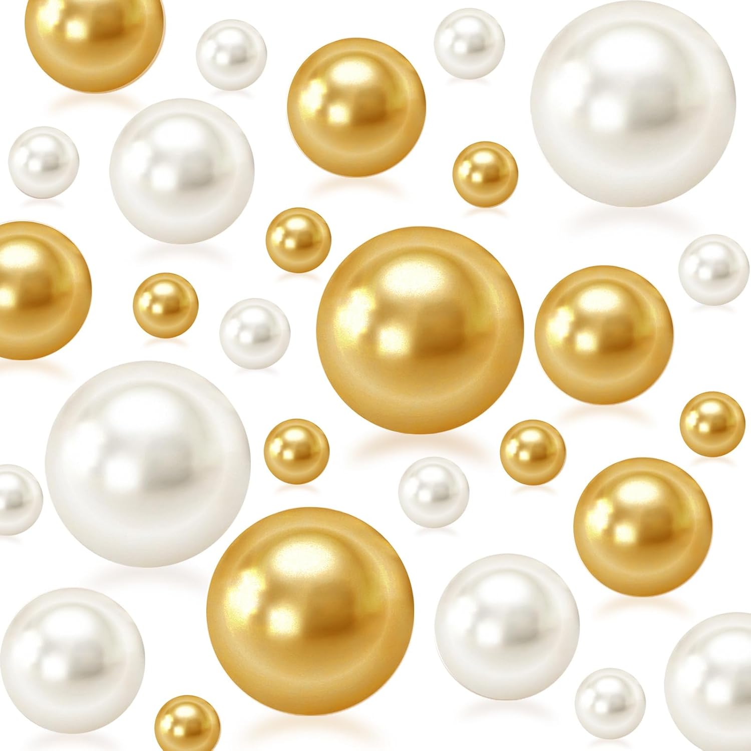 150Pcs Cream&Gold Polished No Hole Faux Pearl Beads for Vase Filling Decorations, Plastic Pearls Vase Fillers, Table Scatters, Wedding Centerpiece, Home Decor, 8/14/20 mm