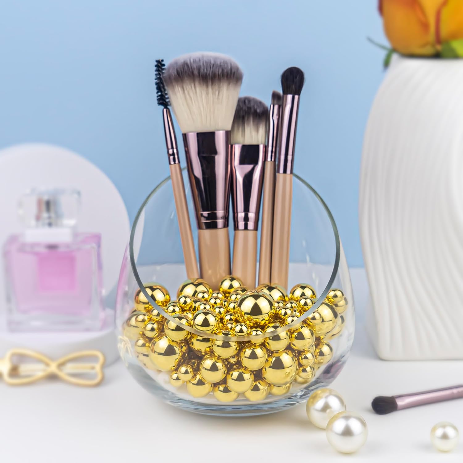 150Pcs Brightgold Polished No Hole Faux Pearl Beads for Vase Filling Decorations, Plastic Pearls Vase Fillers, Table Scatters, Wedding Centerpiece, Home Decor, 8/14/20 mm