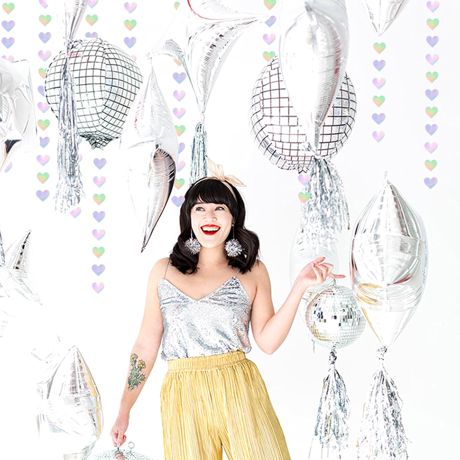 Iridescent Disco-Holographic Heart Garland - 52Ft Wedding Hanging Decoration Neon Streamers Banner, Perfect for Bridal Shower, Birthday, Baby Shower, Engagement, Valentines Day Decor