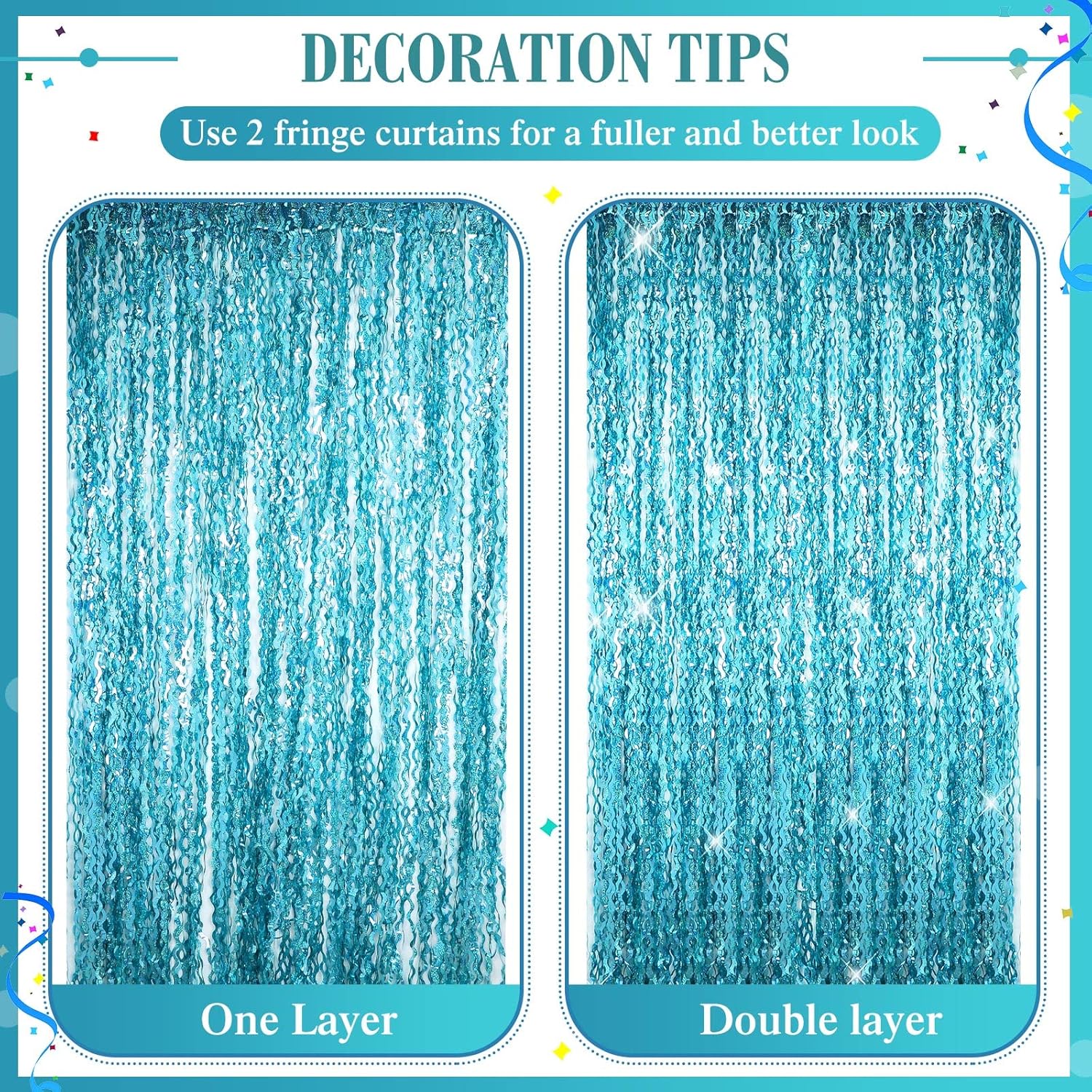 • Reliable Material and Wavy Shape: the foil fringe backdrop is made of quality plastic that is not easy to tear, safe and friendly for children and pets; The surface is covered with laser spots, shiny ribbons and wavy shapes that make you feel like you are in the ocean world