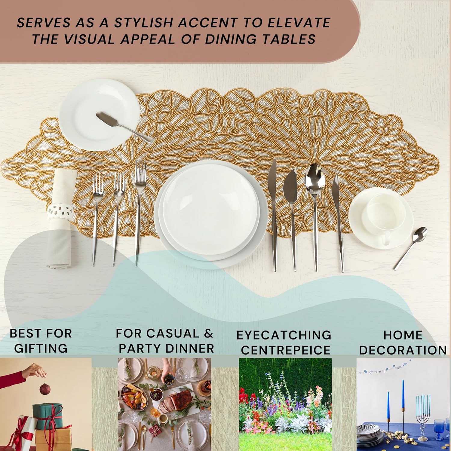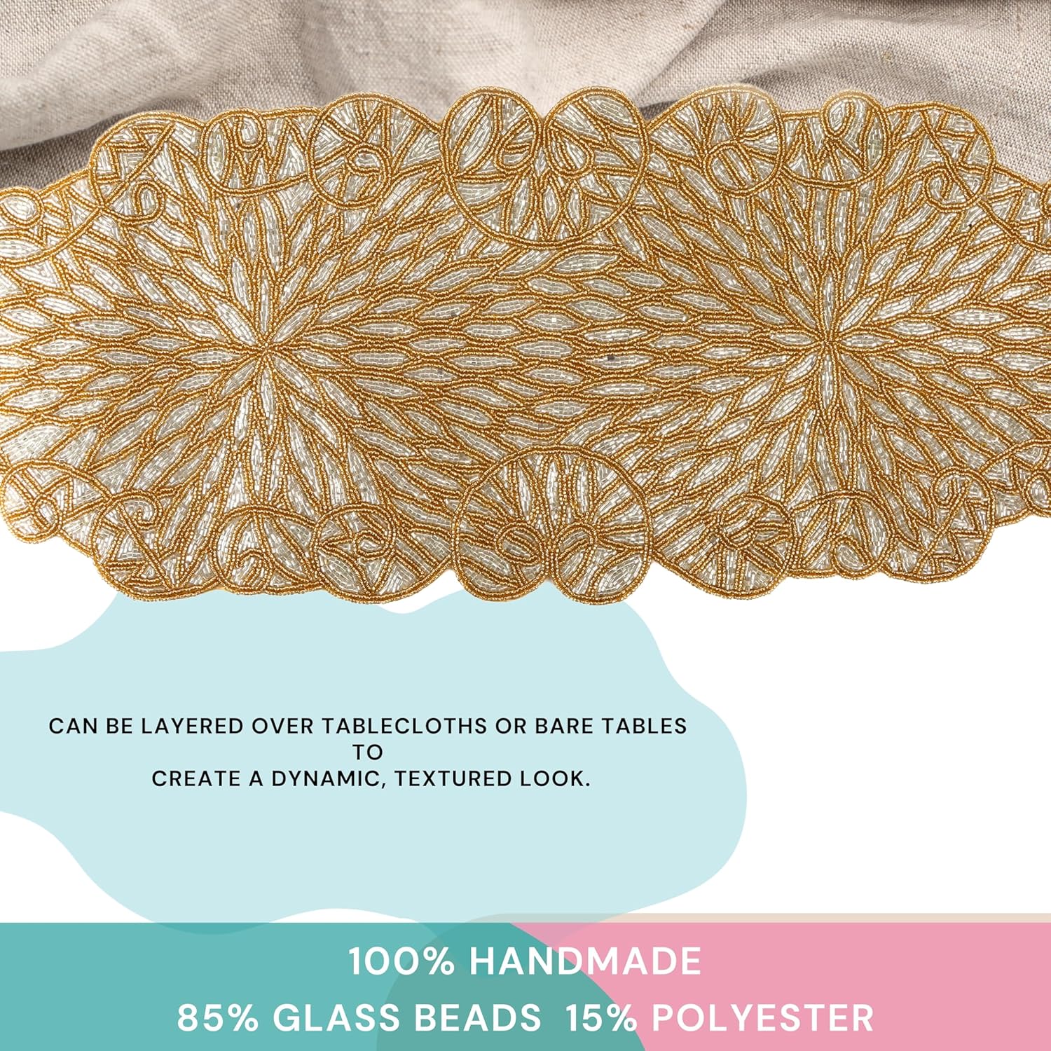 • ✅ PERFECT SIZE & PACK - 13 x 36 inches gold toned beaded table runner: Ideal for most dining, coffee, and console tables.
