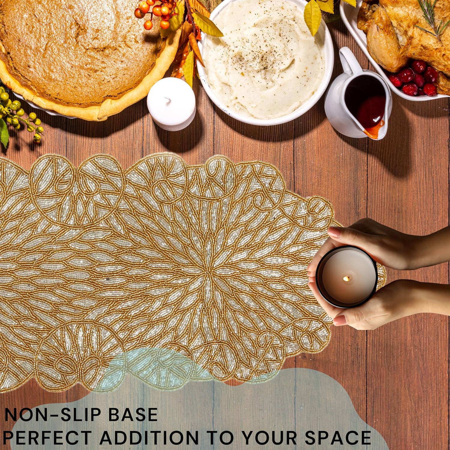 • ✅ CRAFTED WITH PREMIUM GLASS BEADS & POLYESTER: Durable, sparkling beaded table décor designed for long-lasting elegance.