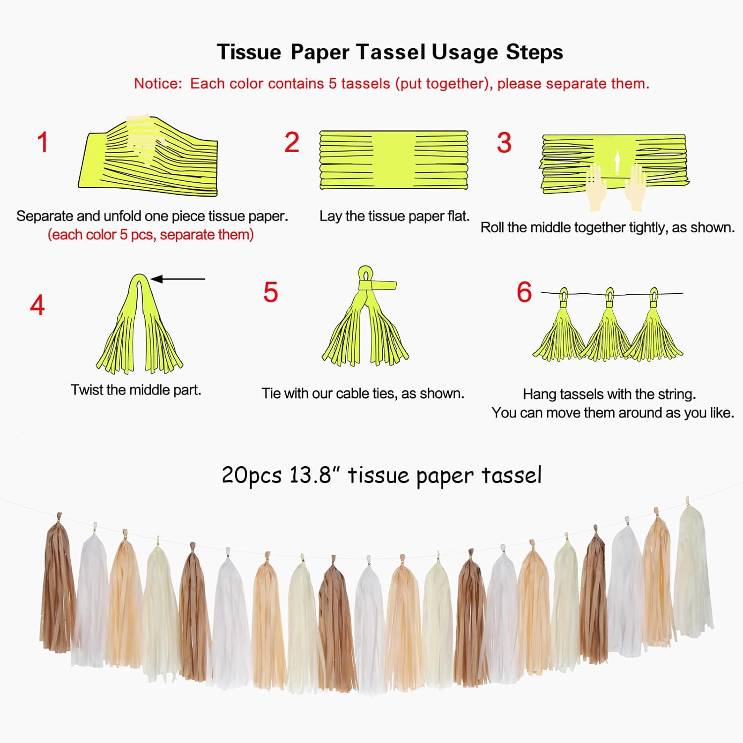 • 【DIY needed】The tissues come plain, need to be assembled as the instruction.Just follow our instruction manual on how to assemble tassels.