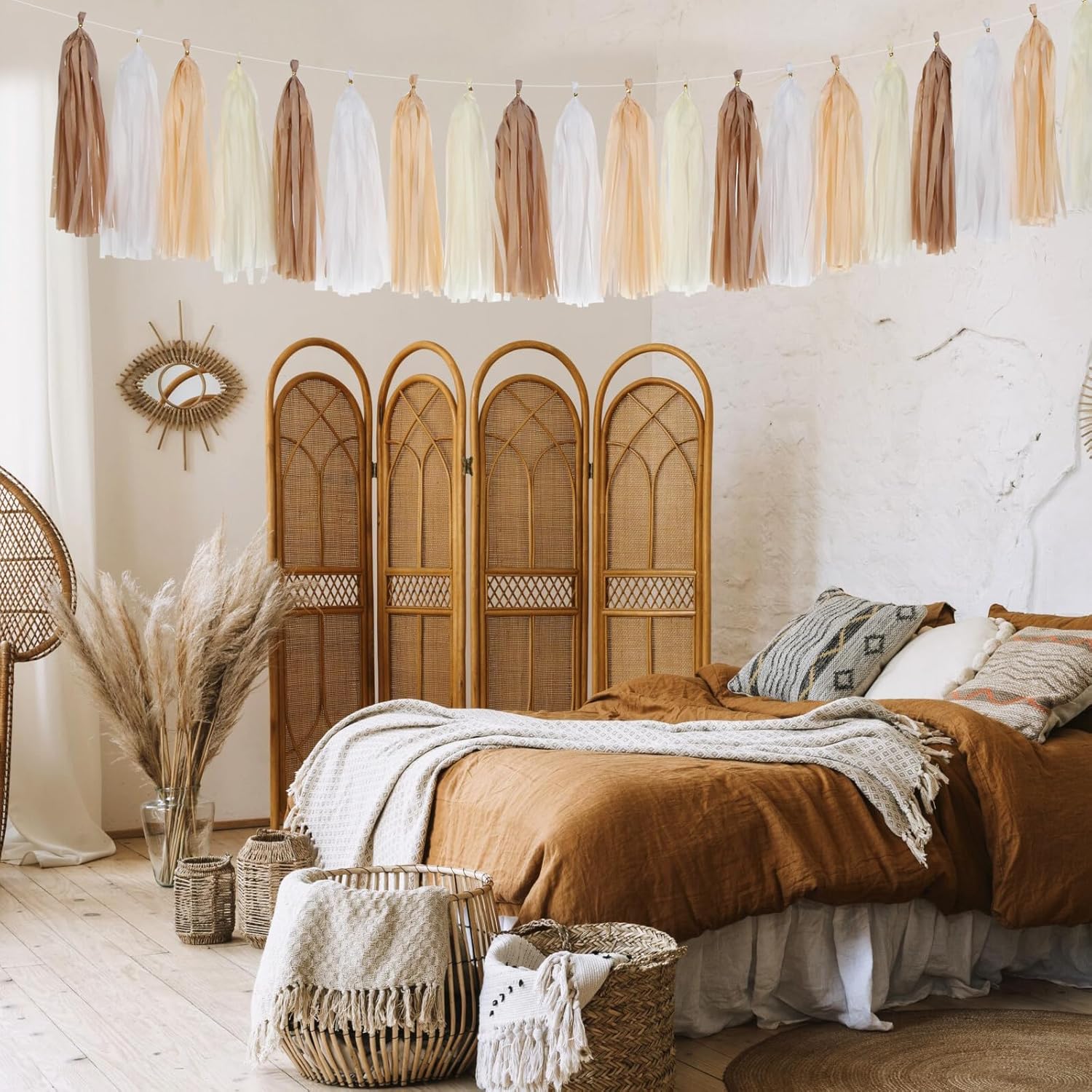 Boho Rainbow Baby-Shower Party-Decorations Tassel-Garland - 20pcs Neutral Birthday Wedding Bridal Tassels, White Brown Champagne Banner Streamers, Engagement Bachelorette Christmas Decor Panduola