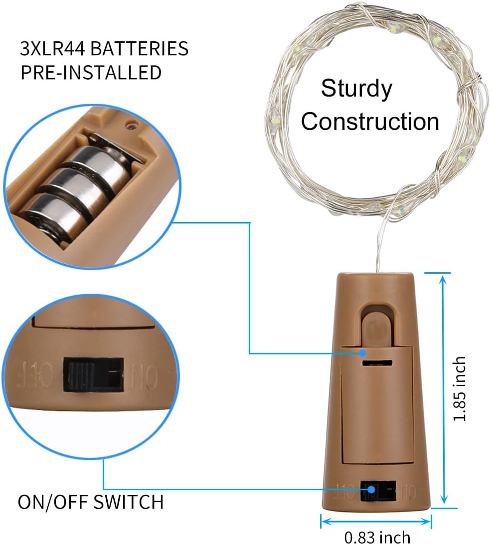 • 【Quality Batteries Pre-installed】 Our fairy lights are powered by pre-installed LR44 batteries in the cork. We have carefully selected these batteries for their durability, ensuring up to 48 hours of continuous lighting.