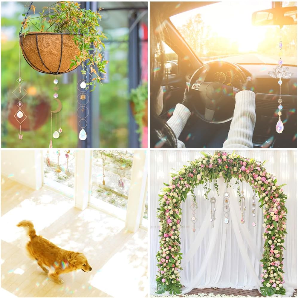 • Hanging Crystal Suncatcher: Sun Catchers kit contains 10 different designs of colorful prism pendants, each individually packaged to avoid crystal and metal scratches. Prism suncatcher will reflect the rainbows very well when the sunlight hits. Each crystal can meet your decoration needs, either alone or with any combination.