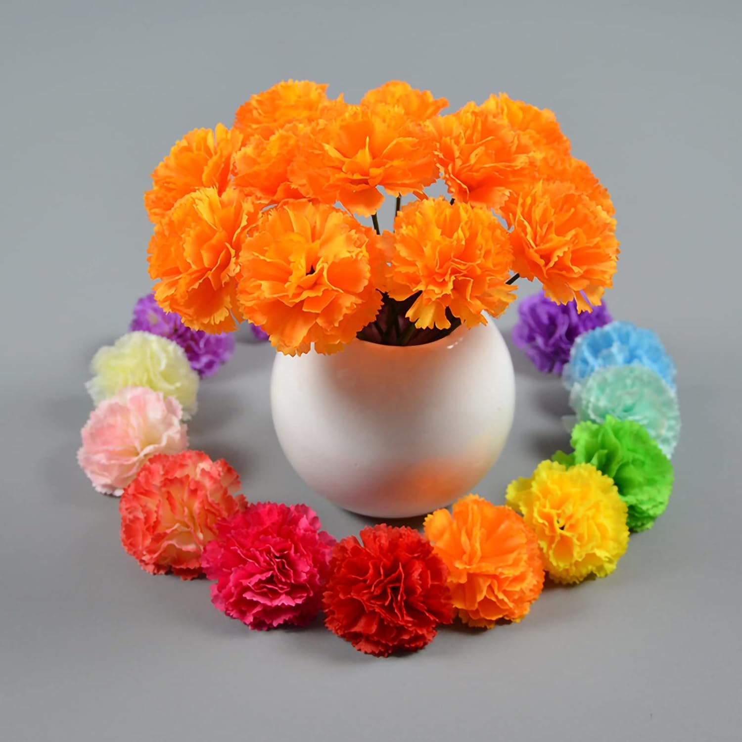 • PREMIUM MATERIALS: The life of a real marigold is short; Why not chose an alternative one; The artificial marigolds are made of silk and plastic, durable for years and remain vivid; The stem is flexible and easy for flower arrangement; These will be your great best decoration in the festival- such as Diwali Halloween Christmas