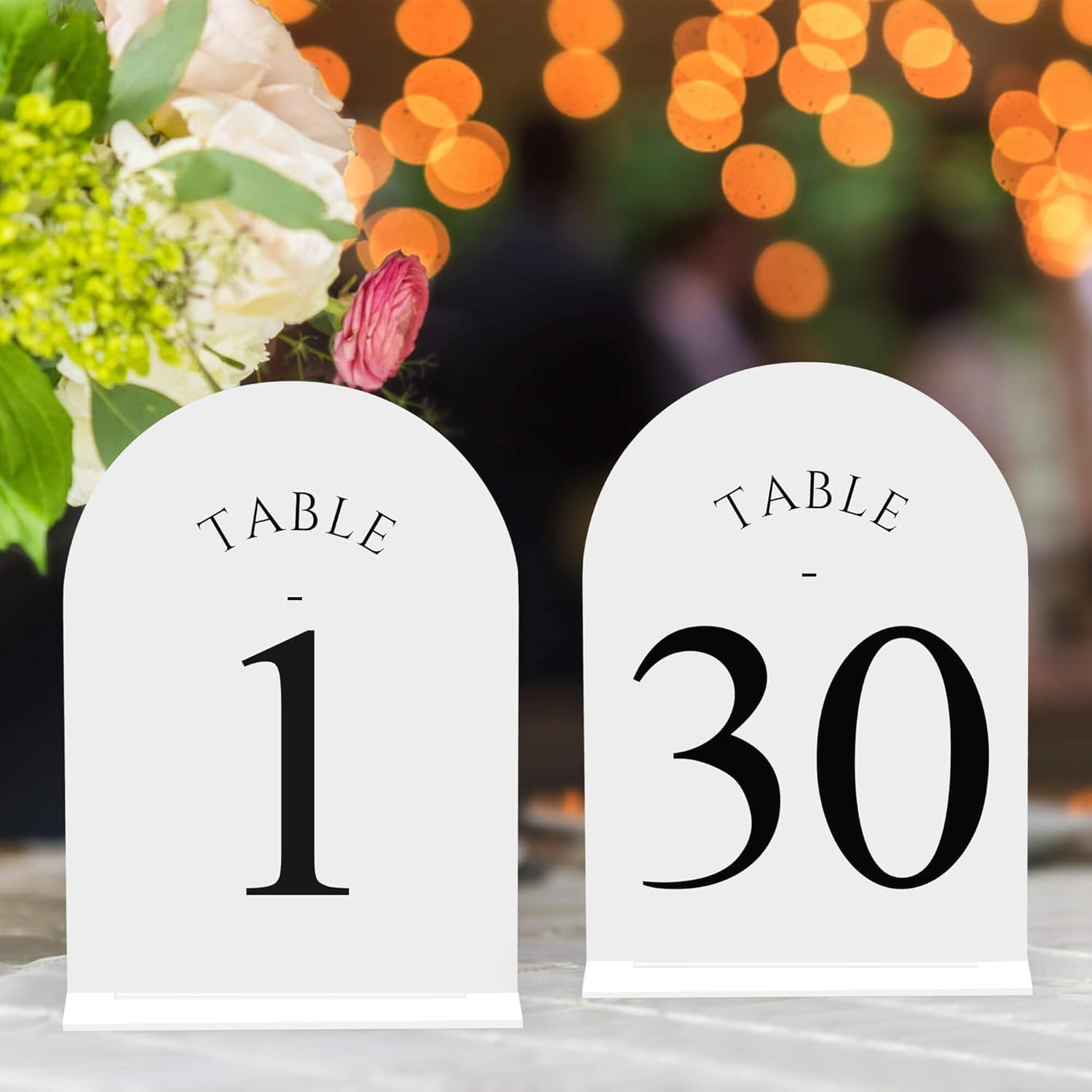 JOYIT Arch Wedding Table Numbers 1-30 with Stands – Double-Sided Printed 5" X 7" Acrylic Table Signs with White Background Black Text, Perfect Acrylic Table Numbers for Wedding Receptions, Parties, Anniversaries, and Events