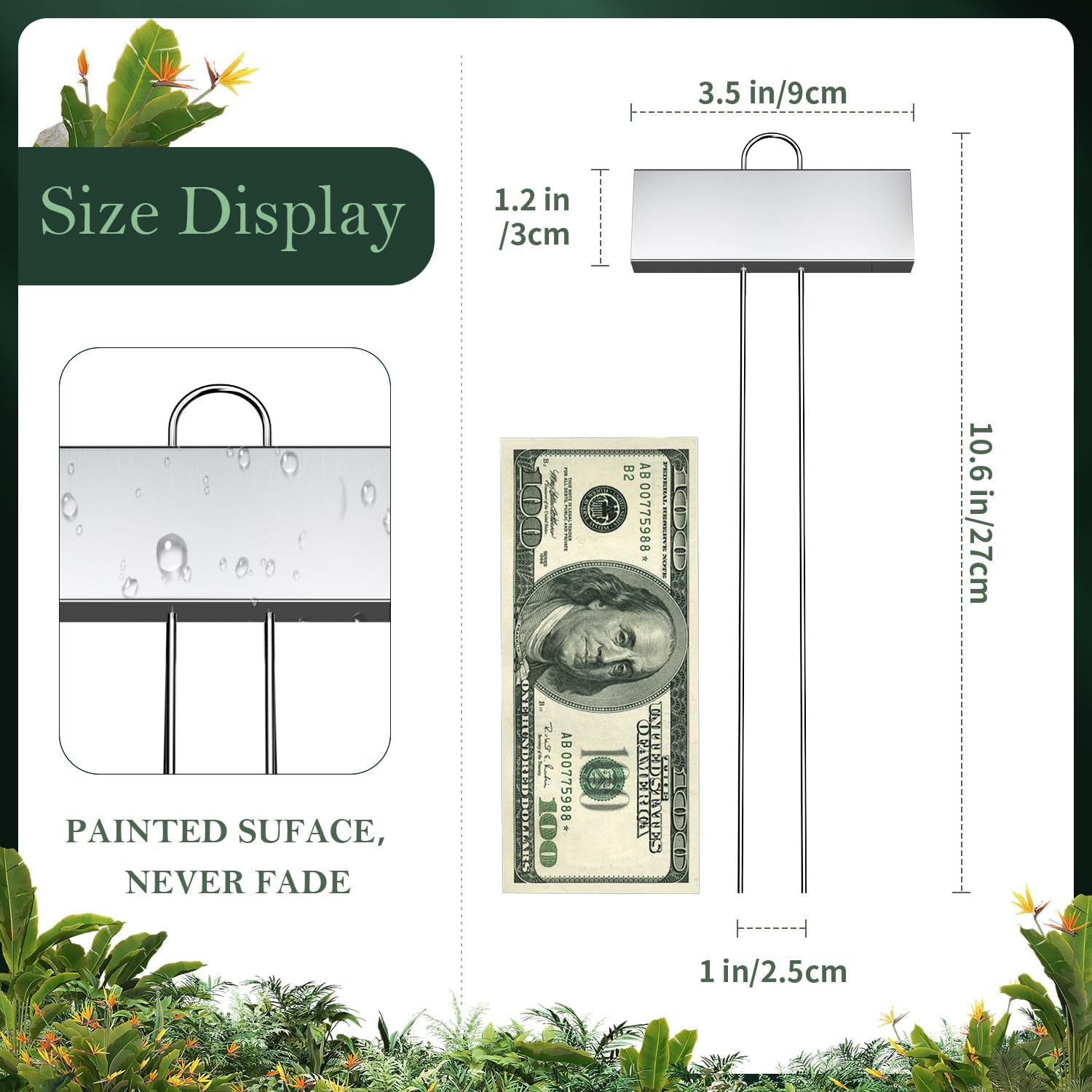 • Attractive Design: Not only are these plant labels practical, but they also add a touch of elegance to your garden. The sleek metal design complements any outdoor space, giving it a polished and organized look. Use these markers to create a well-organized garden or to add a decorative touch to your potted plants.