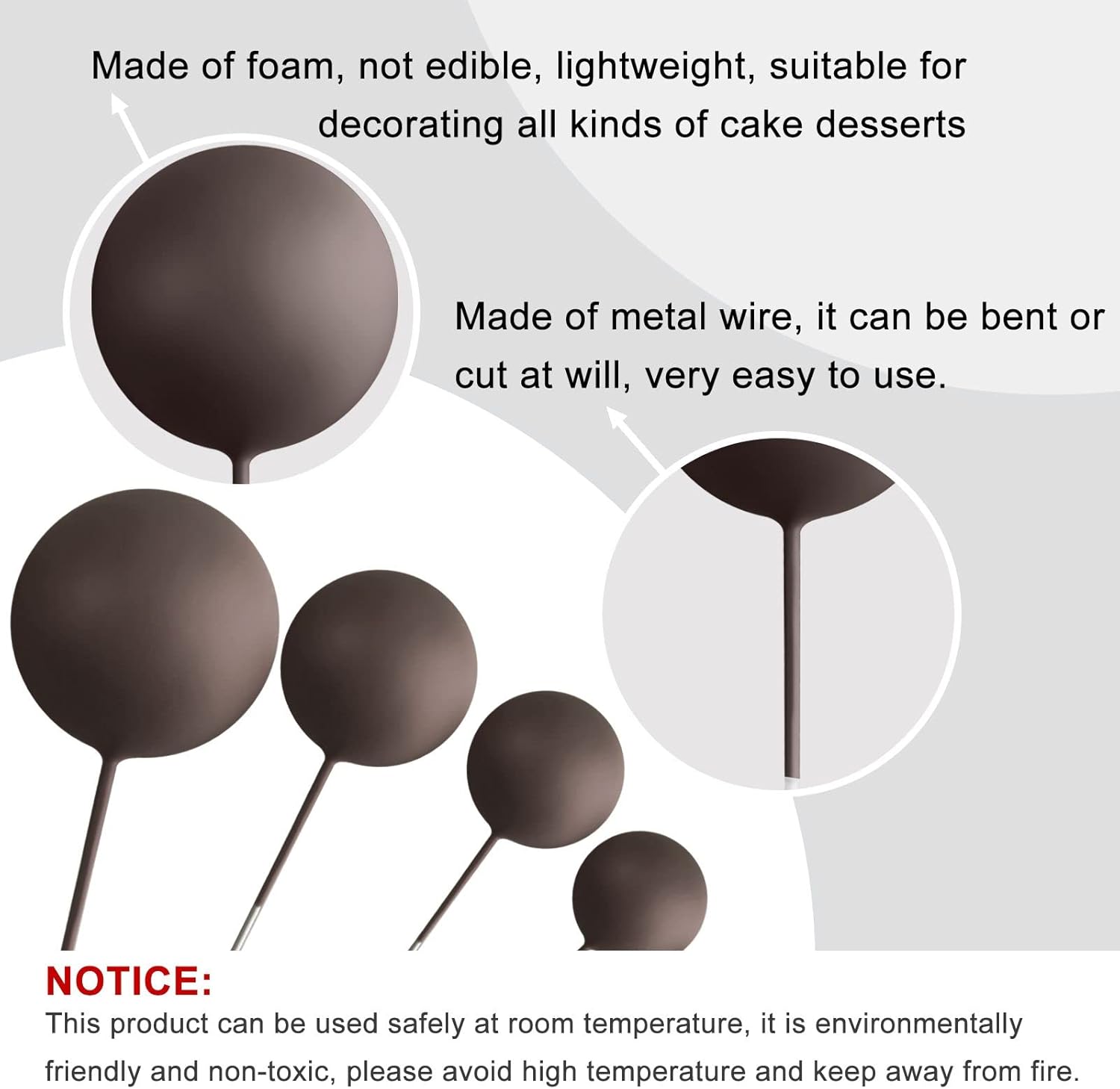 • Premium Material: These Ball Cupcake Toppers are made of foam and wire. Safe to decorate food at room temperature, such as cake or dessert decorating use, or cupcakes, fruits, cheese and any dish and appetizer you want to decorate.