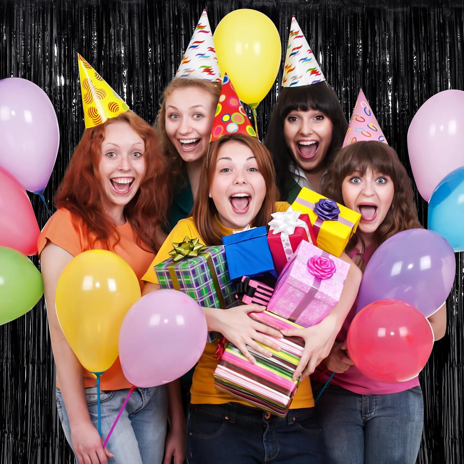 • Shiny Material and INSTALLATION. This tinsel b is made of shiny tinsel, for families with children and pets.Add a touch of glamour to your party décor with our Foil Fringe Curtain It's so easy to install and hassle-free with its pre-attached adhesive strip at the back. wide enough, ensuring it won't easily strip down. With our Fringe Curtains Party Decors, you can effortlessly transform any space into a stunning party venue
