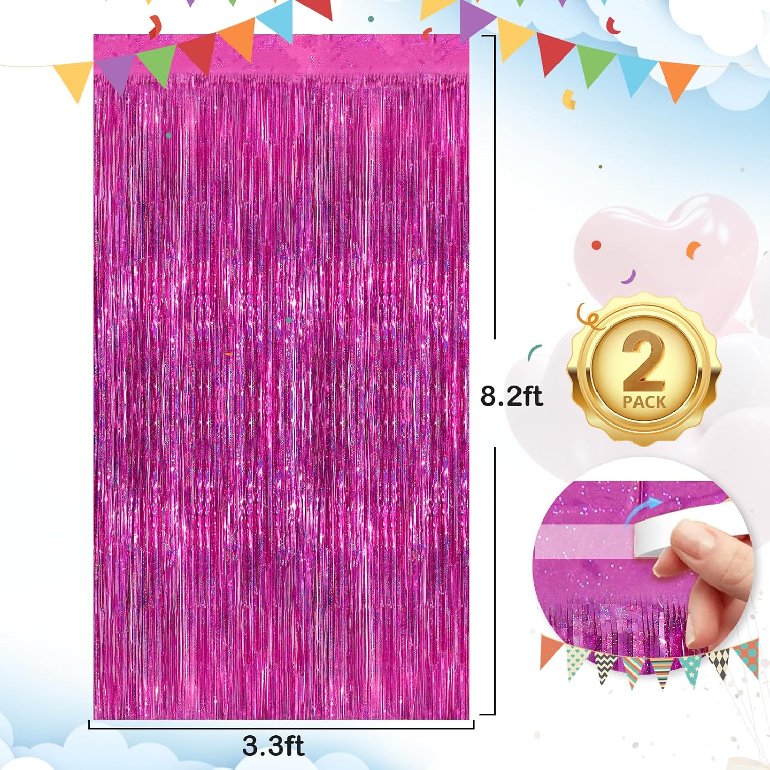 • Materials , The package contains 2 packs of aluminum foil tassel curtains with a size of 3.3 x 8.3ft. It is long enough for any occasion. Please do not stick aluminum foil Streamers curtains to uneven or stained walls to prevent them from falling off