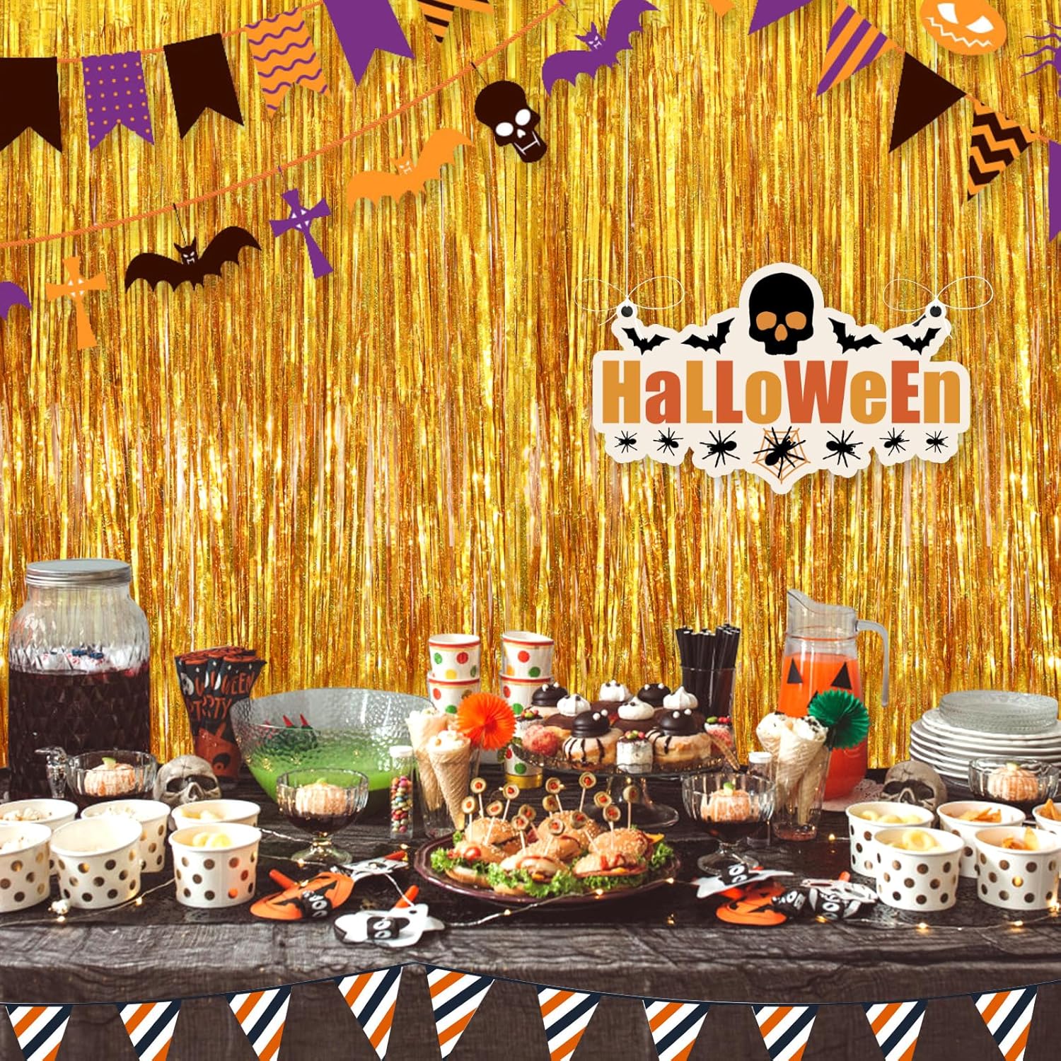 2Pack 3.3 x 8.3 Ft Gold Party Streamers, Tinsel Streamers Birthday Party Decorations, Fringe Backdrop for Graduation, Baby Shower, Door Streamers Tinsel Curtain Gender Reveal New Year Party Streamers