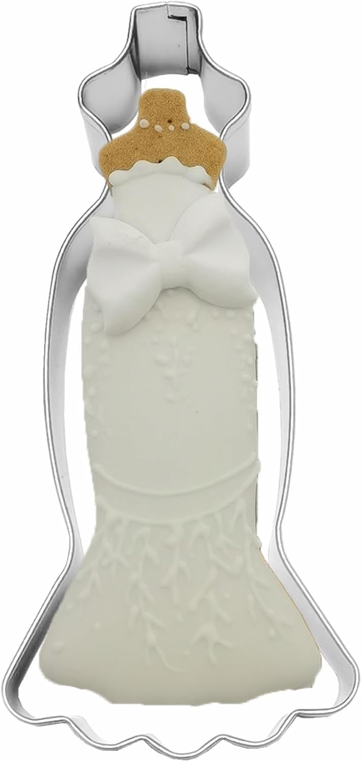 Large Size Dress Shaped Cookie Cutter, Stainless Steel Strapless Mermaid Fishtail Princess Wedding Dress Cookie Cutter, 4.7 Inches