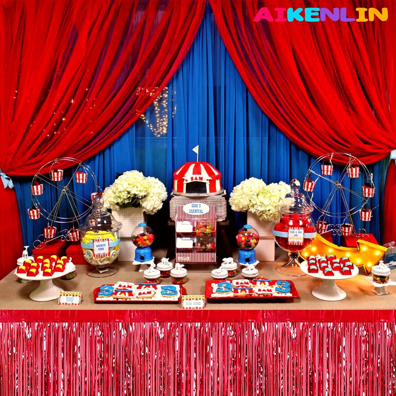 6 Pack 29x108 Inch Metallic Foil Fringe Tinsel Table Skirts Banner for Rectangle Tables Streamer Garland Curtains Backdrop for Wedding, Birthday, Parade Floats, Christmas Party Decoration(Red)