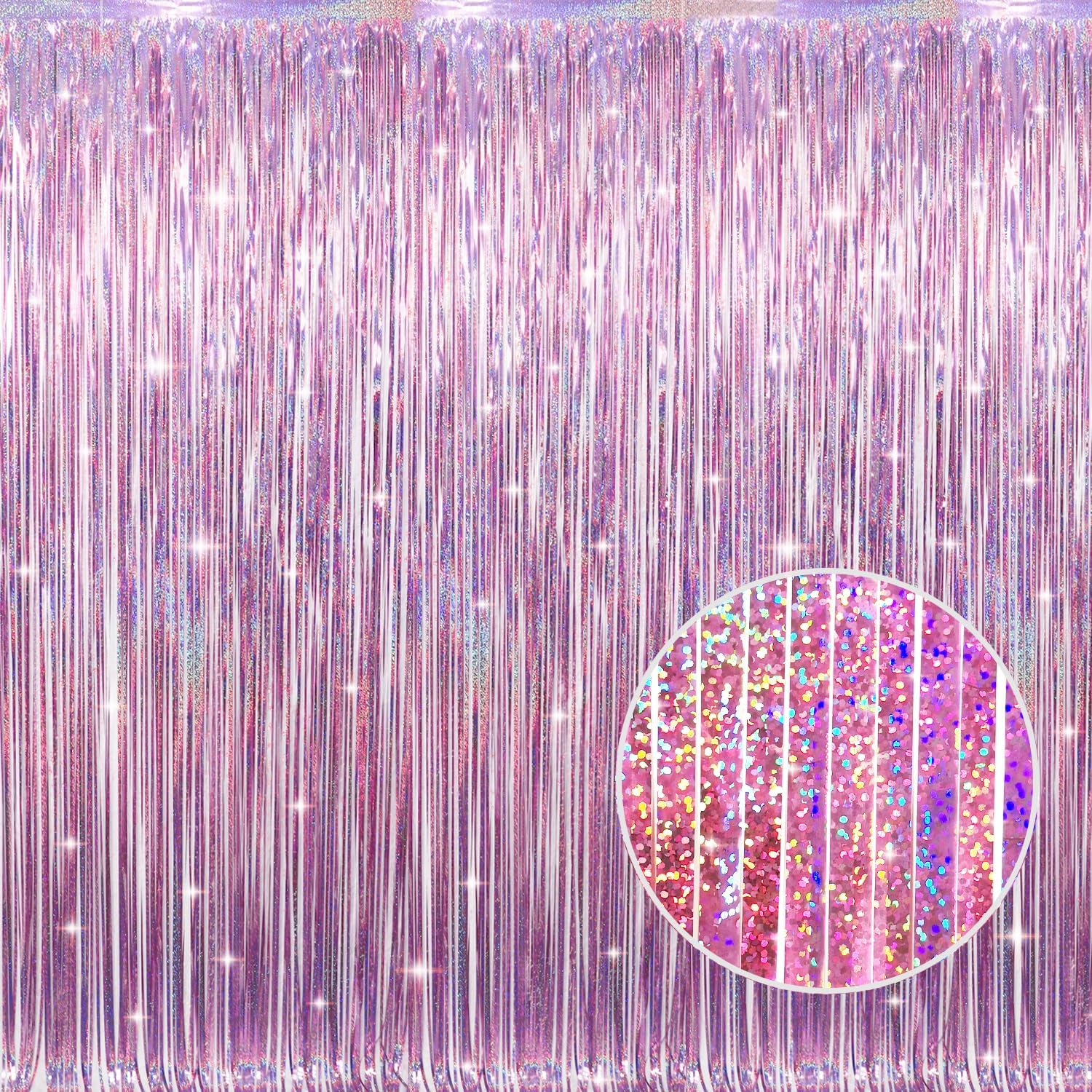 • Package Includes:1 pack laser pink foil fringe curtain,3.2 ft x 8.2 ft each,suitable for hanging on a door or coverage a wall fully