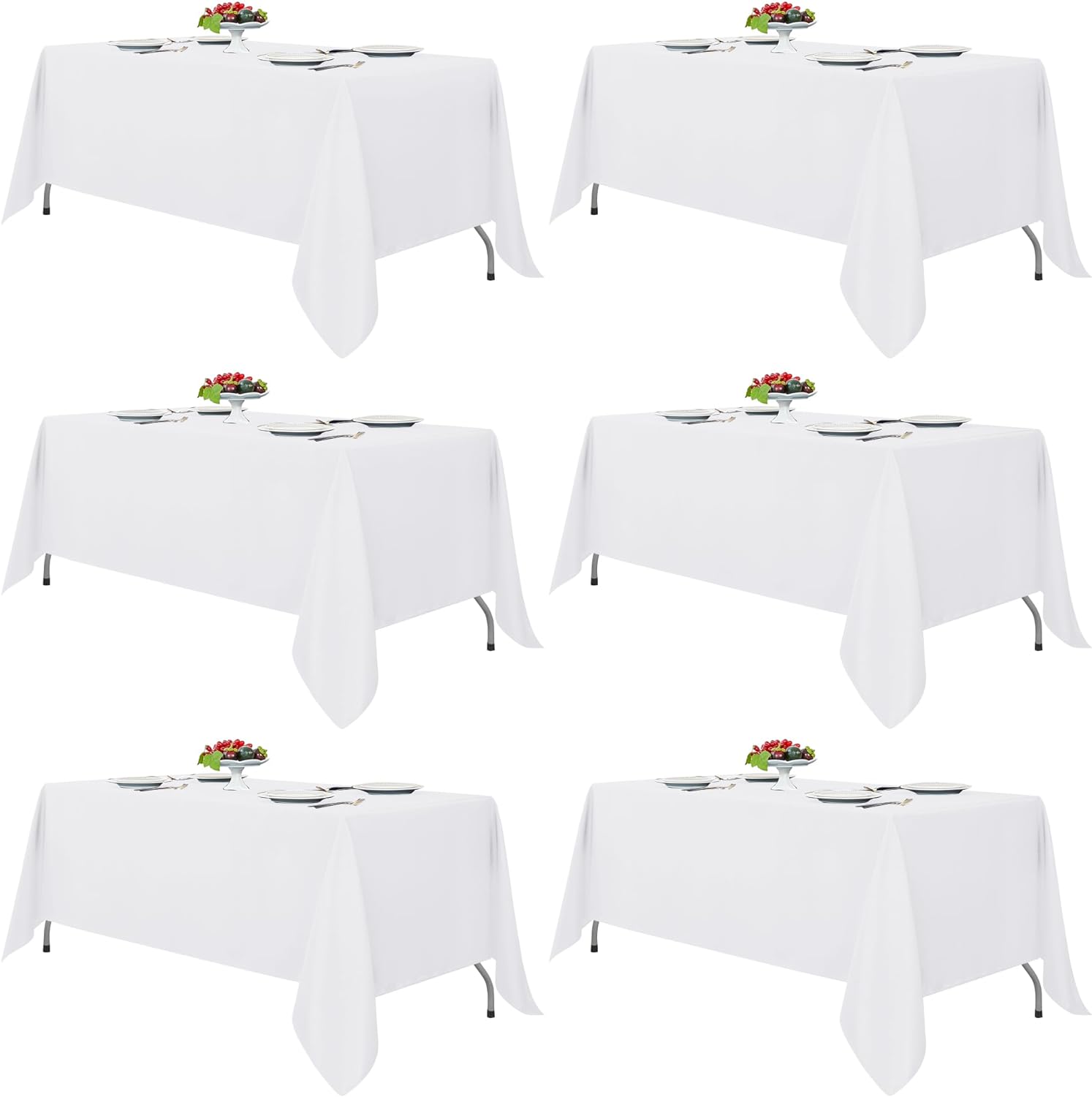 Fitable White Rectangle Tablecloths for 6 Foot Tables, 6 Pack - 70 x 108 Inches - Stain Resistant and Washable Table Clothes, Polyester Fabric Table Covers for Wedding, Party, Banquet, Buffect