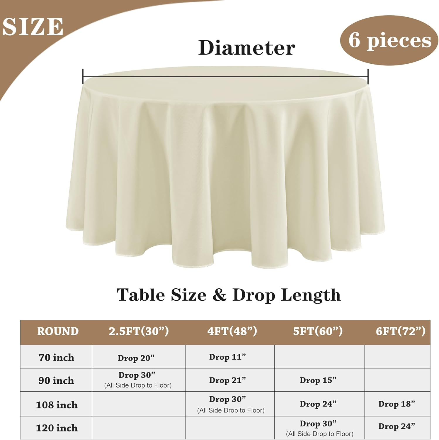 Fitable 6 Pack Ivory Round Table Clothes - 70 Inches in Diameter - Stain Resistant and Washable Tablecloths, Polyester Fabric Table Covers for Wedding, Party, Banquet, Gathering