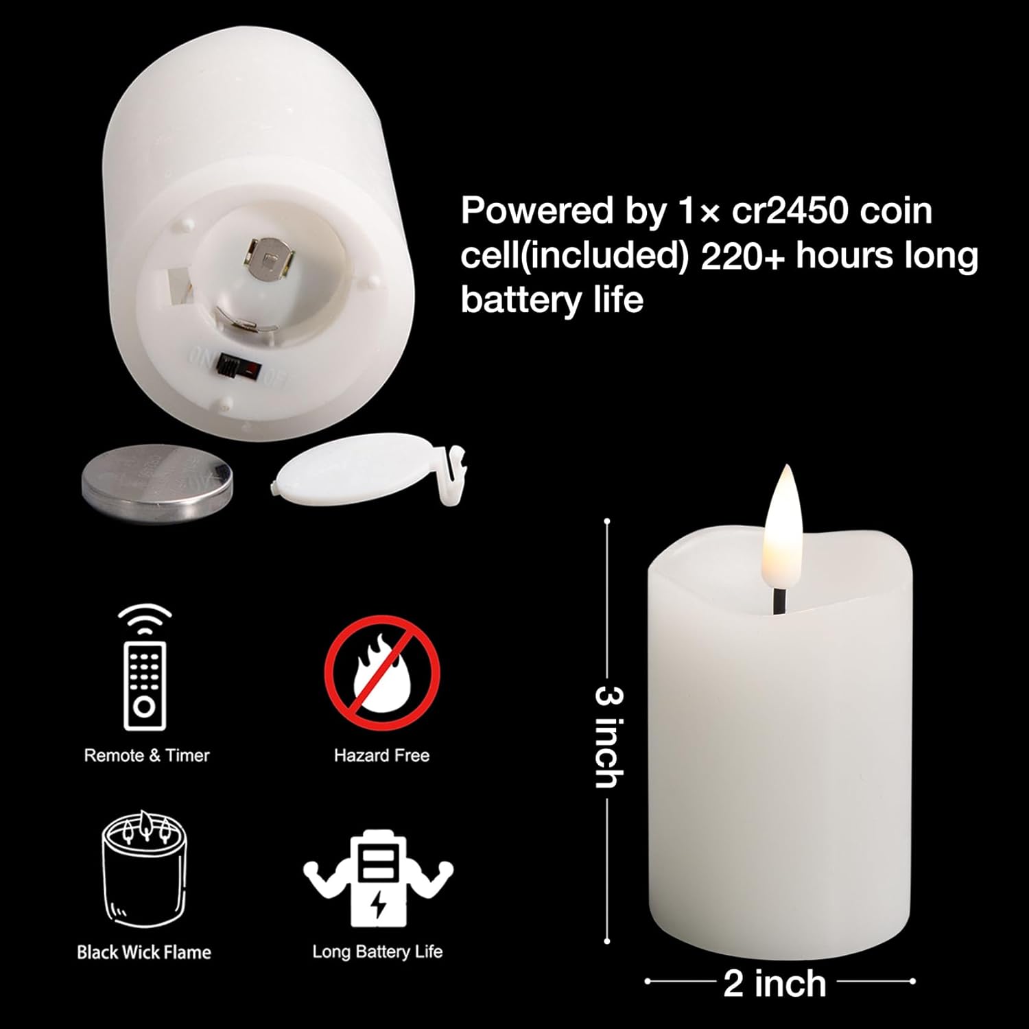 • Realistic Flameless Candles: these white candles are coated with real wax, simulated with flickering black wick flame, it is too realistic to fool your eyes especially lit up.