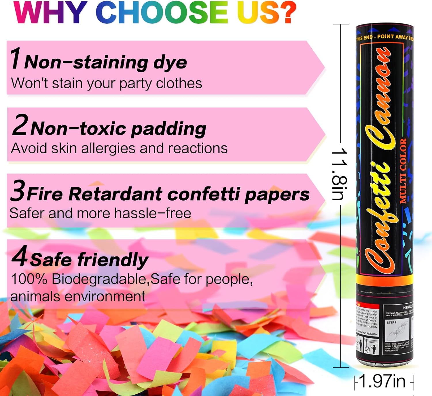 • 【SATISFACTION GUARANTEED】Your experience matters to us. If you're unhappy with our confetti cannon, please reach out. Our team will swiftly address any concerns to ensure your full satisfaction. Risk-free shopping with exceptional customer service.
