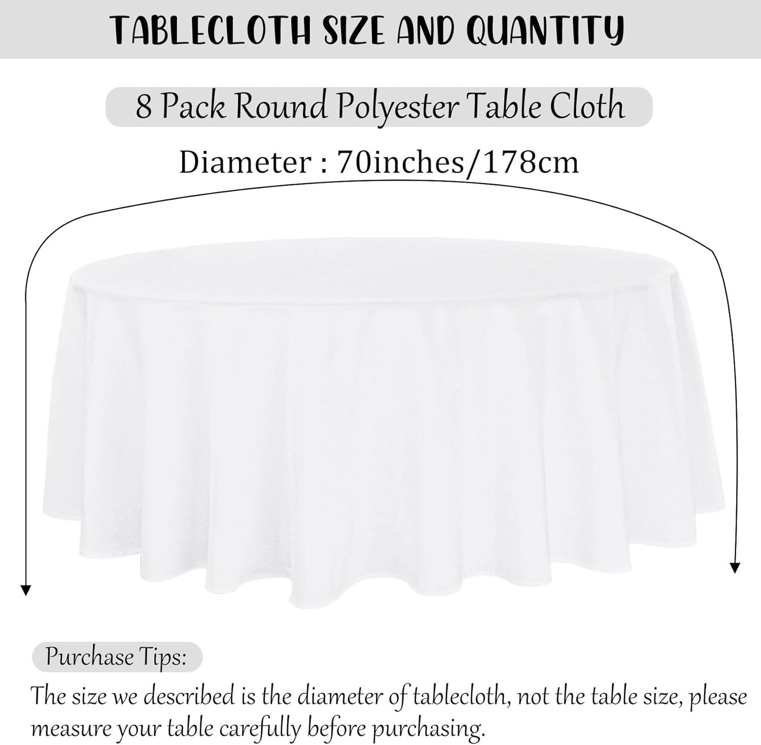 8 Pack Round Tablecloth 70 Inch White Round Table Covers Bulk Washable Polyester Fabric Table Clothes for Wedding Party Reception Banquet Buffet Restaurant (White, 70 Inch)