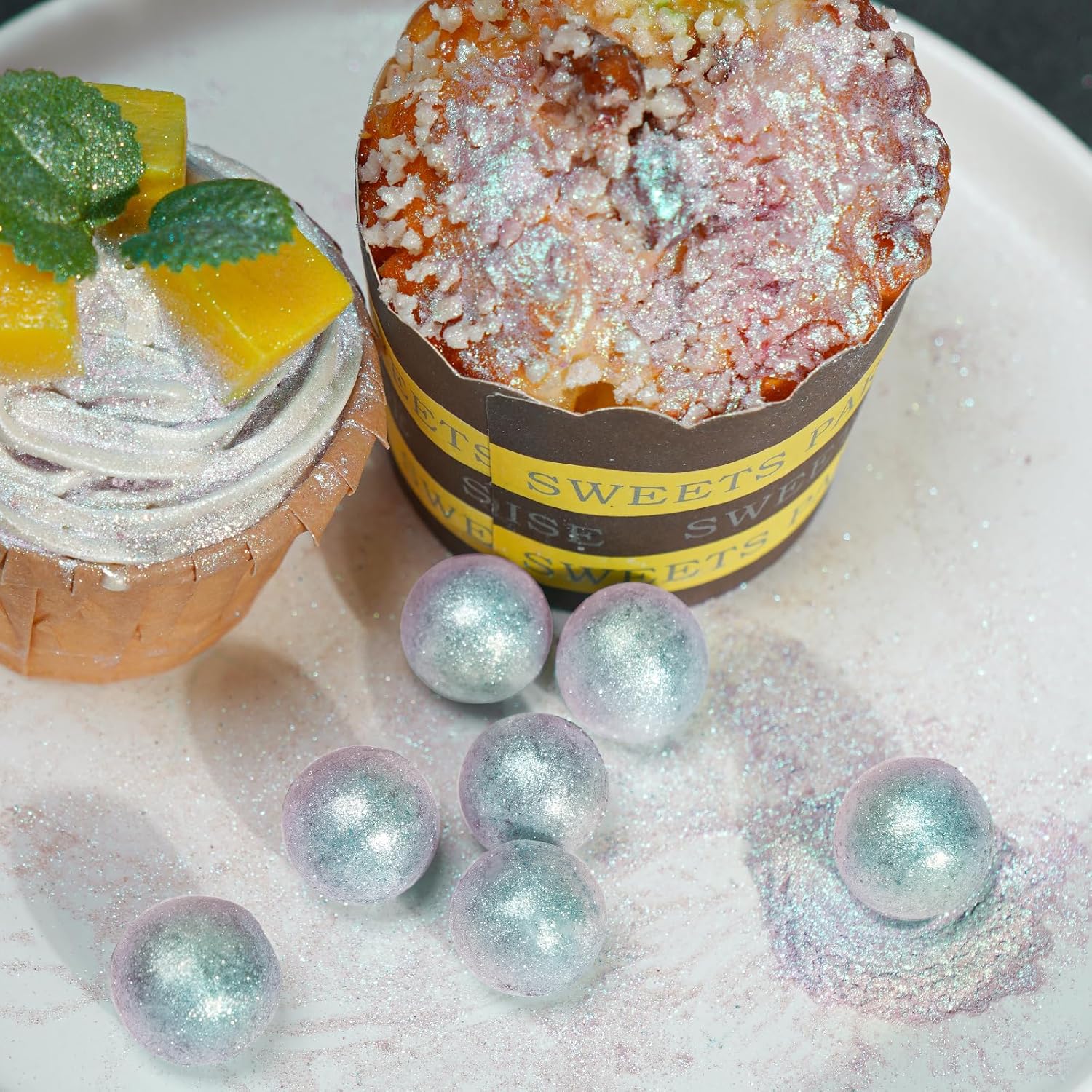 • ✔️【Easy to Use】Specially developed for food decoration and craft industries, this luster dust produces realistic looks by highly pigmented colors with a metallic finish. The pretty fine grain is more convenient for painting. To add glimmer and sparkle to your creations, simply sprinkle or dry brush the luster glitters on them. This product adheres very well to both wet and dry mediums. Attention: Seal and store glitter powder in a cool and dry place after use. Do not expose to excessive heat.