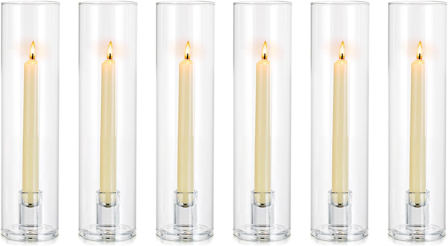 NUPTIO Candle Stick Candle Holder: Clear Glass Hurricane Candlestick Holders - Set of 6 Modern Taper Candle Stand with 11.8 inch Long Chimney Cover for Thanksgiving Christmas Fireplace Table Decor