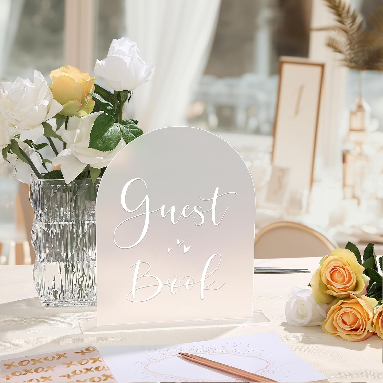UNIQOOO 10 Pack Acrylic 8x10 Frosted Arch Table Sign for Wedding with Holders, 1/8 in Thick, DIY Blank Arch Sign Sheet Perfect for Decoration, Party,Anniversary, Event, Stand Included