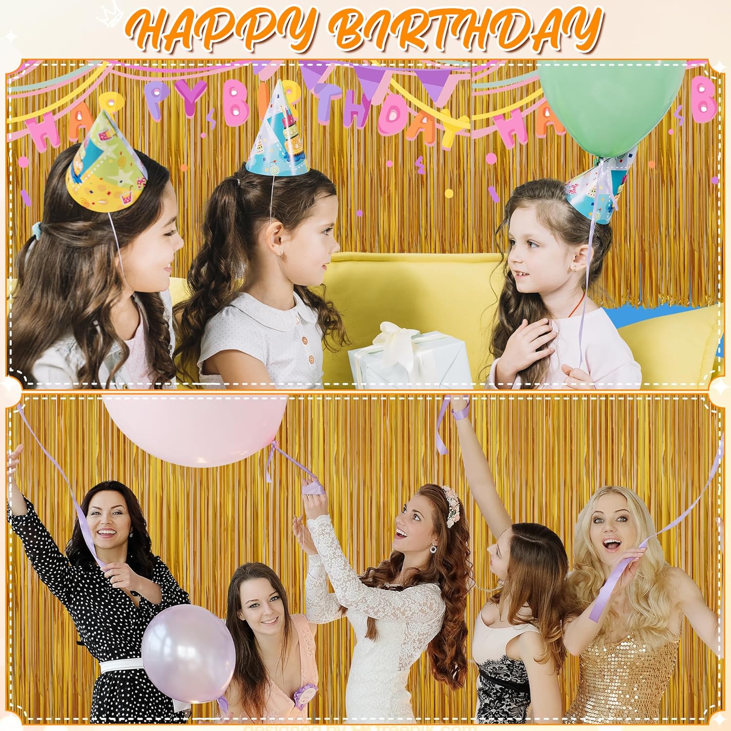 Crosize 4 Pack 3.3 x 8.2 ft Gold Foil Fringe Curtains Party Decorations, Gold Tinsel Curtain Backdrop for Parties, Door Streamers, Glitter Streamer Fringe Backdrop for Birthday Decoration