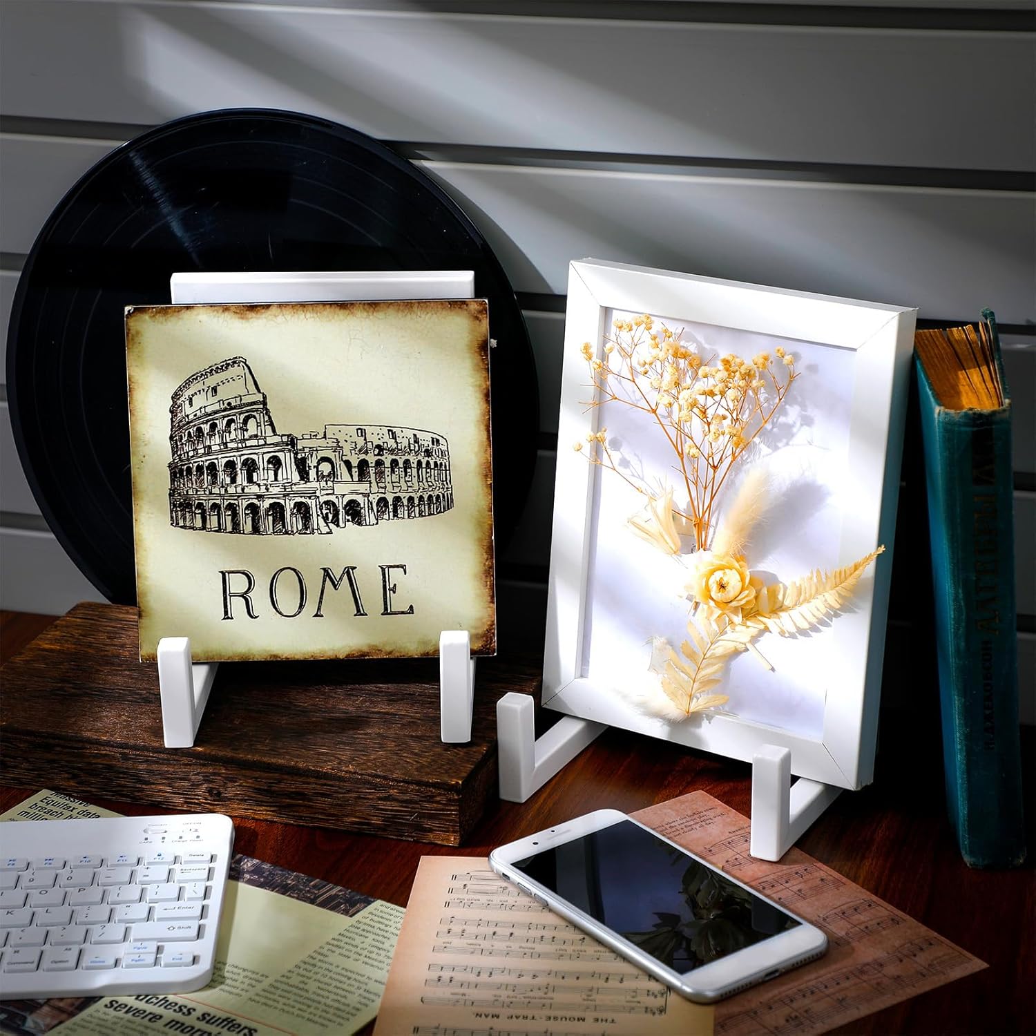 • Industrial Style: as you can see in the pictures, our picture frame holder stand comes in white color, presenting a modern and industrial visual effect; Meanwhile, they adopt geometric lines and shapes, smooth and simple, adding a sense of aesthetic beauty to your tabletops and shelves