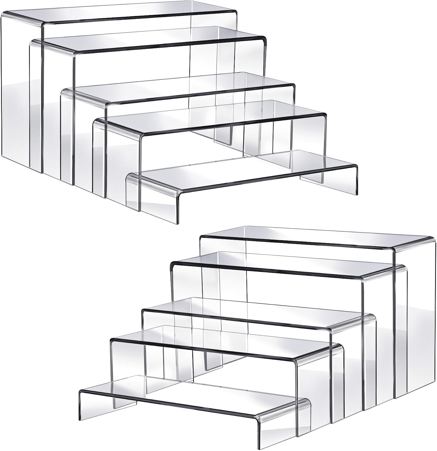 • Multiple Display Layers: With four different sizes (9.4x3x5.9in, 9x3x5in, 8.5x3x3.5in, 8.2x3x2.7in and 7.8x3x1.2in), each with two pieces, you'll have ample display layers to showcase your items.
