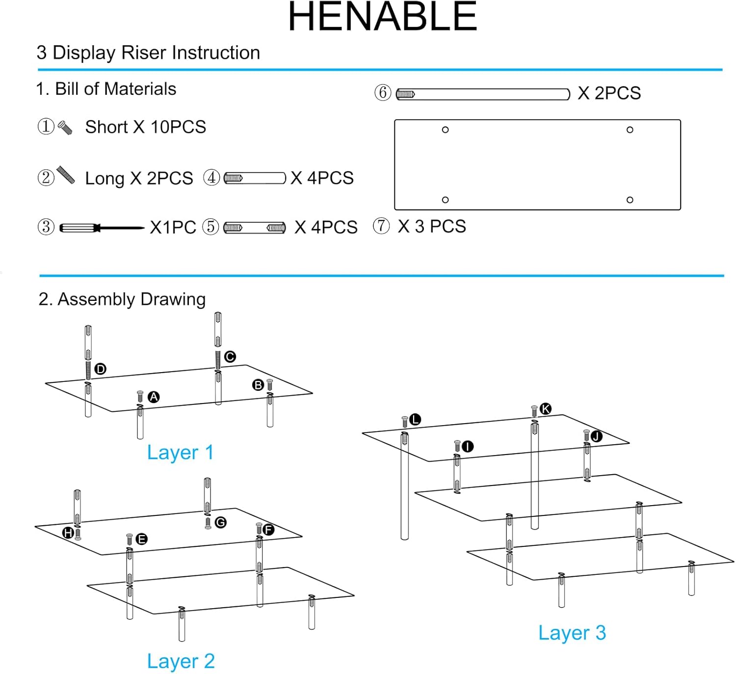 • What You Get: Acrylic stand riser include 1 X 3-tier display stand, 1 X Phillips Screwdriver, 1 X Specification