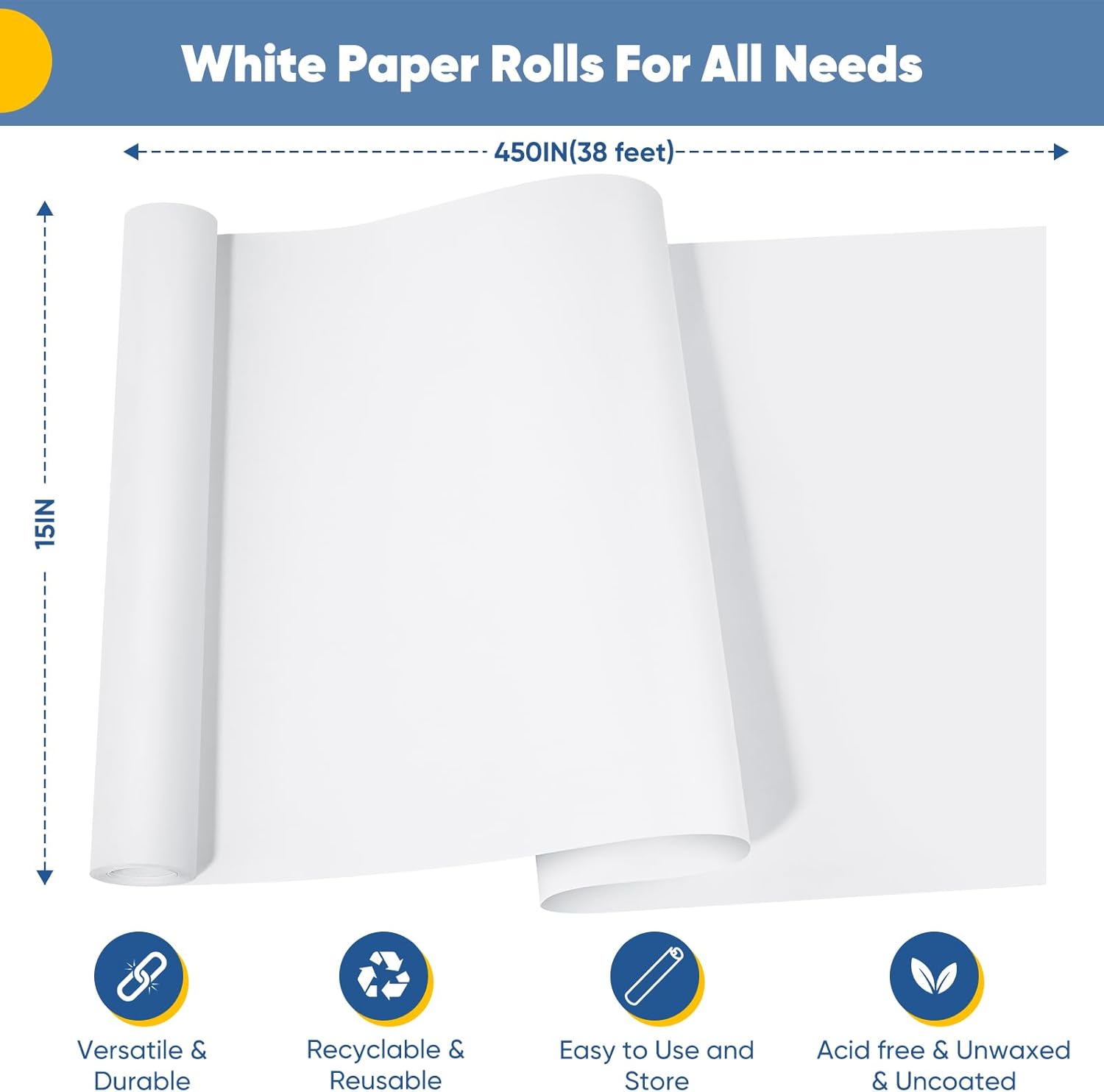 White Wrapping Paper Craft Paper Kraft Paper Roll 15" x 450", Bulletin Board Paper, Arts & Crafts, Gift Wrapping Packing Painting Drawing Paint Easel Poster Chart Decorative Paper, Kids Art Supplies