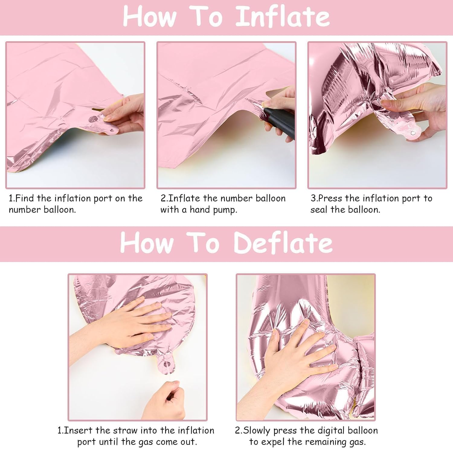 • πŸŽ‰ Repeated Use πŸŽ‰ - The pastel pink number 2 balloons set contains a straw that can be used to deflate the foil balloon, simply insert the straw into the valve and press gently until the gas is completely expelled. After use, it can be folded and stored for reuse.