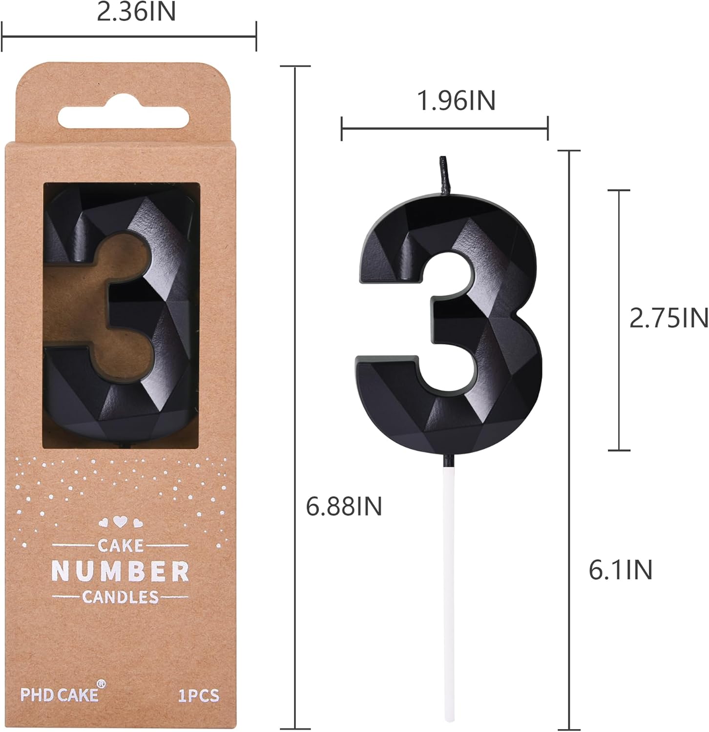 • New: 2.76 Inch Large Crystal Black 3 Number Birthday Candle designed to make your cake and birthday a unique and truly inspiring event.