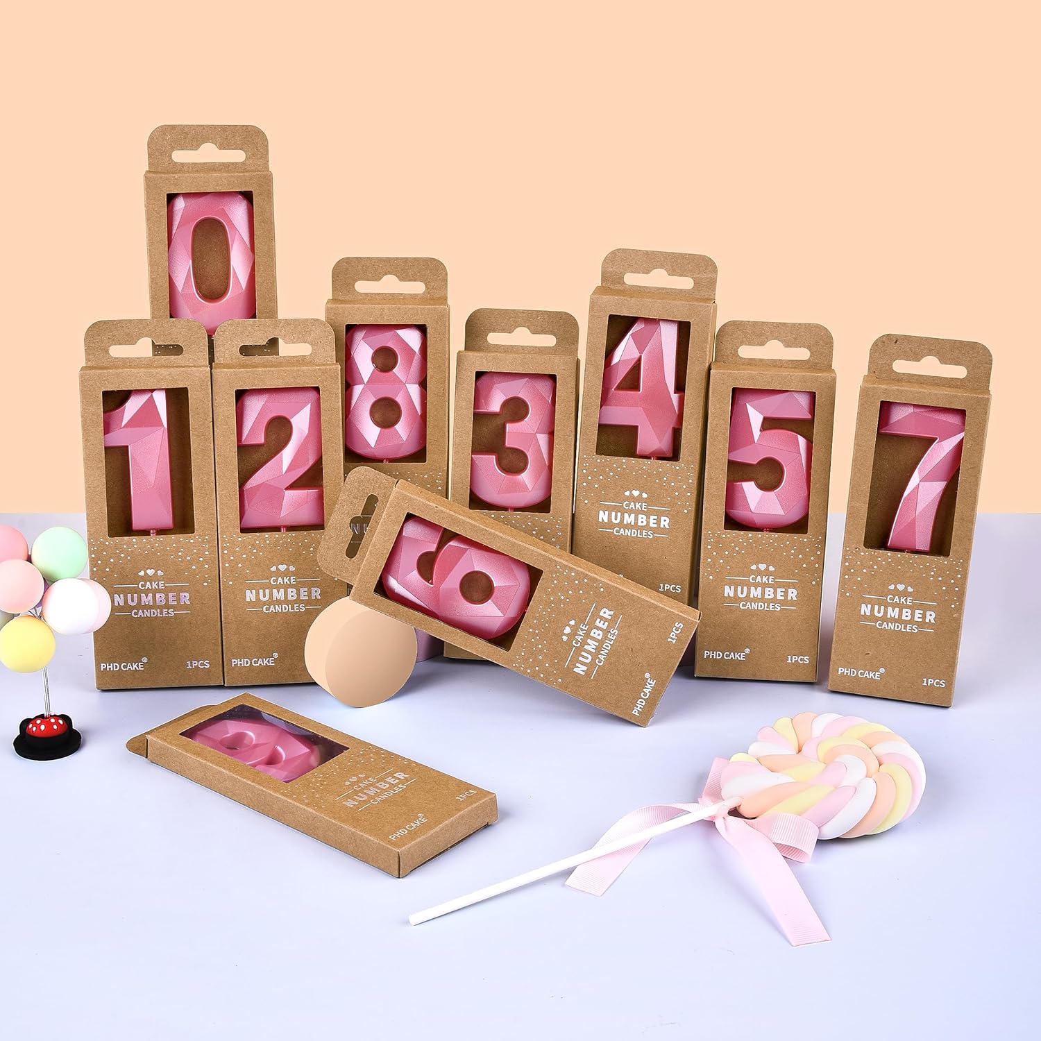 PHD CAKE 2.76 Inch Crystal Pink 8 Number Birthday Candles, Pink Cake Candles for Party Celebration