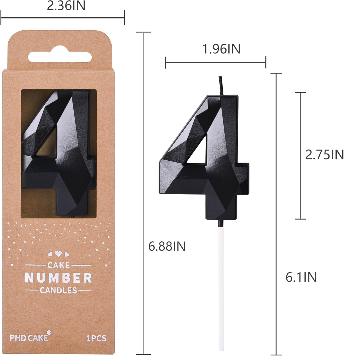 • New: 2.76 Inch Large Crystal Black 4 Number Birthday Candle designed to make your cake and birthday a unique and truly inspiring event.