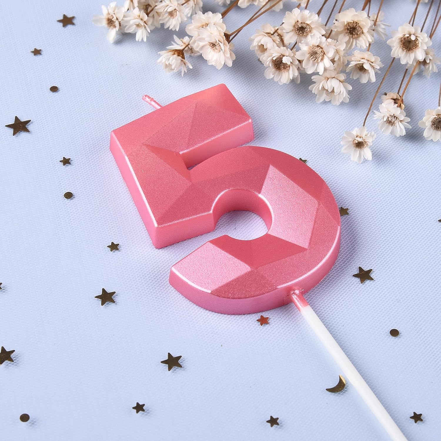 • New: 2.76 Inch Large Crystal Pink 5 Number Birthday Candle designed to make your cake and birthday a unique and truly inspiring event.