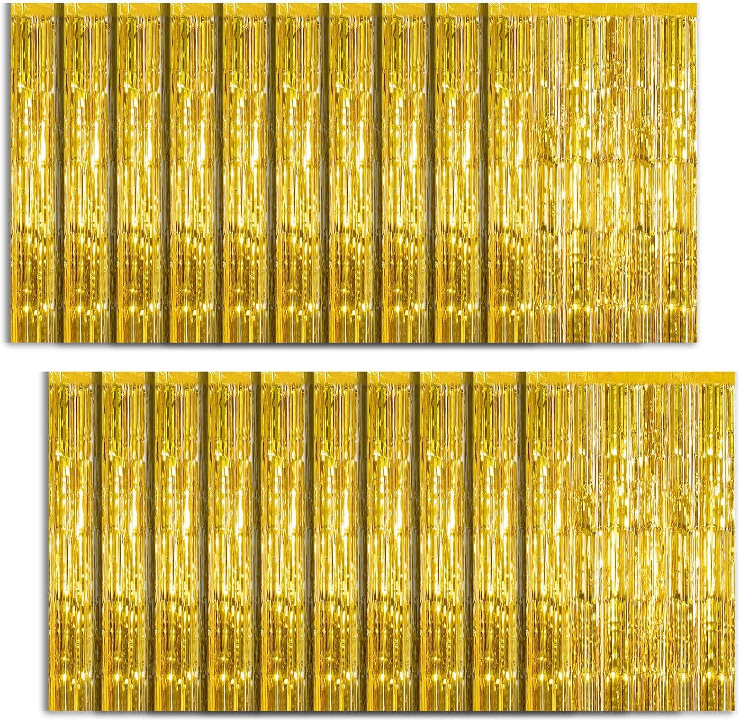 20 Pack Foil Curtain Backdrop Gold Metallic Tinsel Foil Fringe Curtains Photo Booth Props for Birthday Wedding Engagement Baby Shower Bachelorette Christmas Holiday Celebration Party Decorations