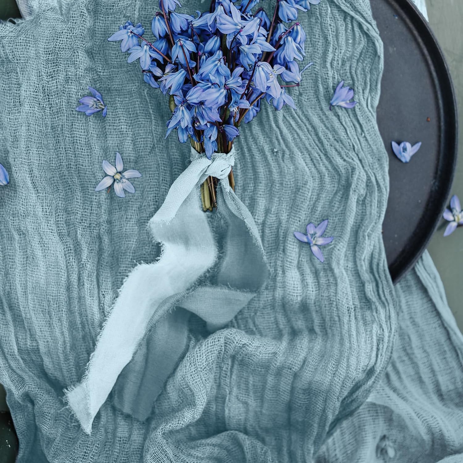 • 【Soft Material】: Made of high quality polyester, soft to touch, comfortable and durable. Wrinkled design cheese cloth farbic, delicate edges and stitches, adopts seamless technique makes this sheer table runner more graceful than traditional fabrics. Our cheesecloth wedding table runners are durable, the colour stays for a long time, does not fade and can be reused.
