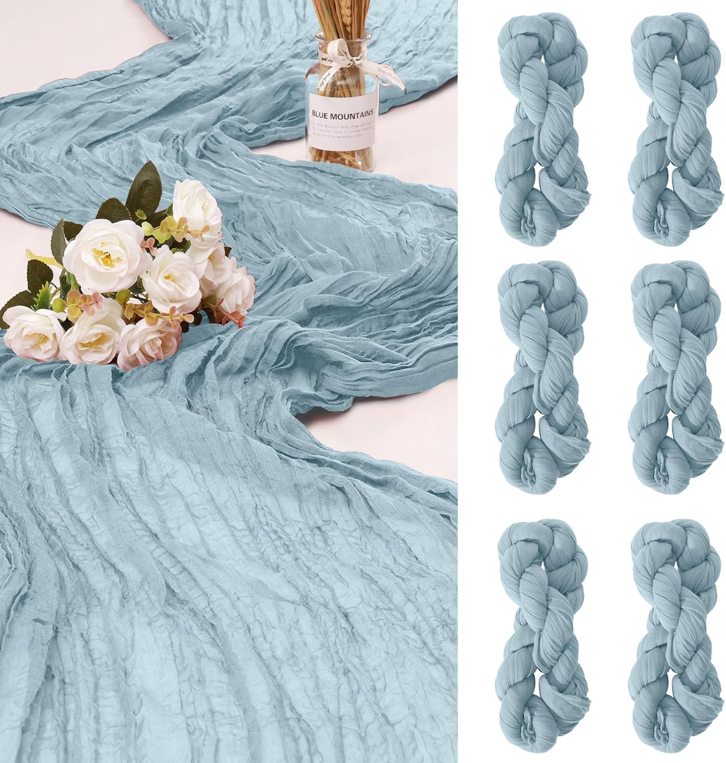 6 Pack Cheesecloth Table Runner 10Ft Christmas Gauze Boho Table Runners for Wedding Decor Bridal Shower Decorations Baby Shower Party(35" x 120")