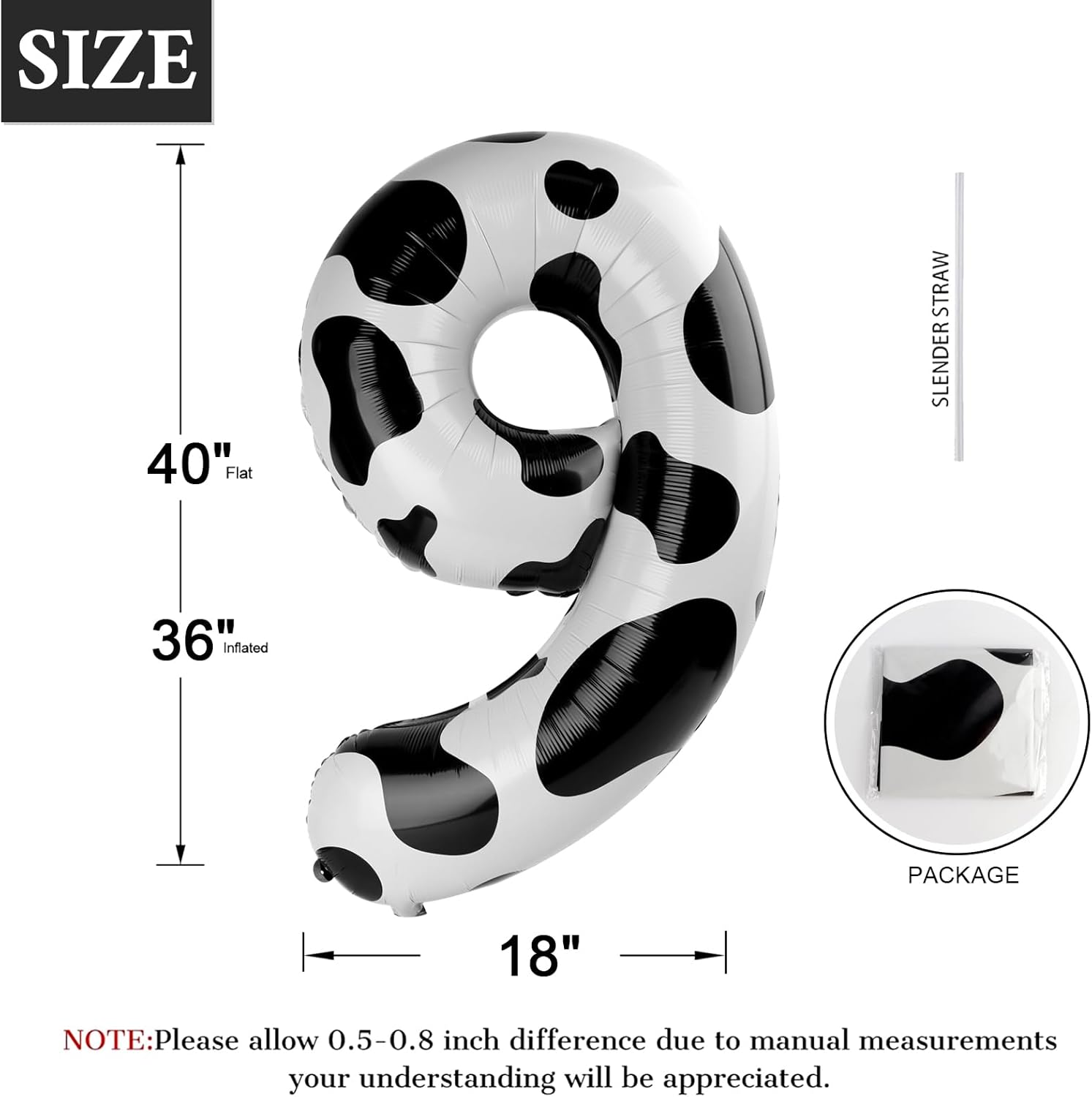 Cow Print Number Balloon Birthday Decorations, 40 inch Number balloon 0-9(Zero-Nine), Cow Balloon for Farm Birthday Party Supplies, Cow Themed birthday party Decorations (Number 9)