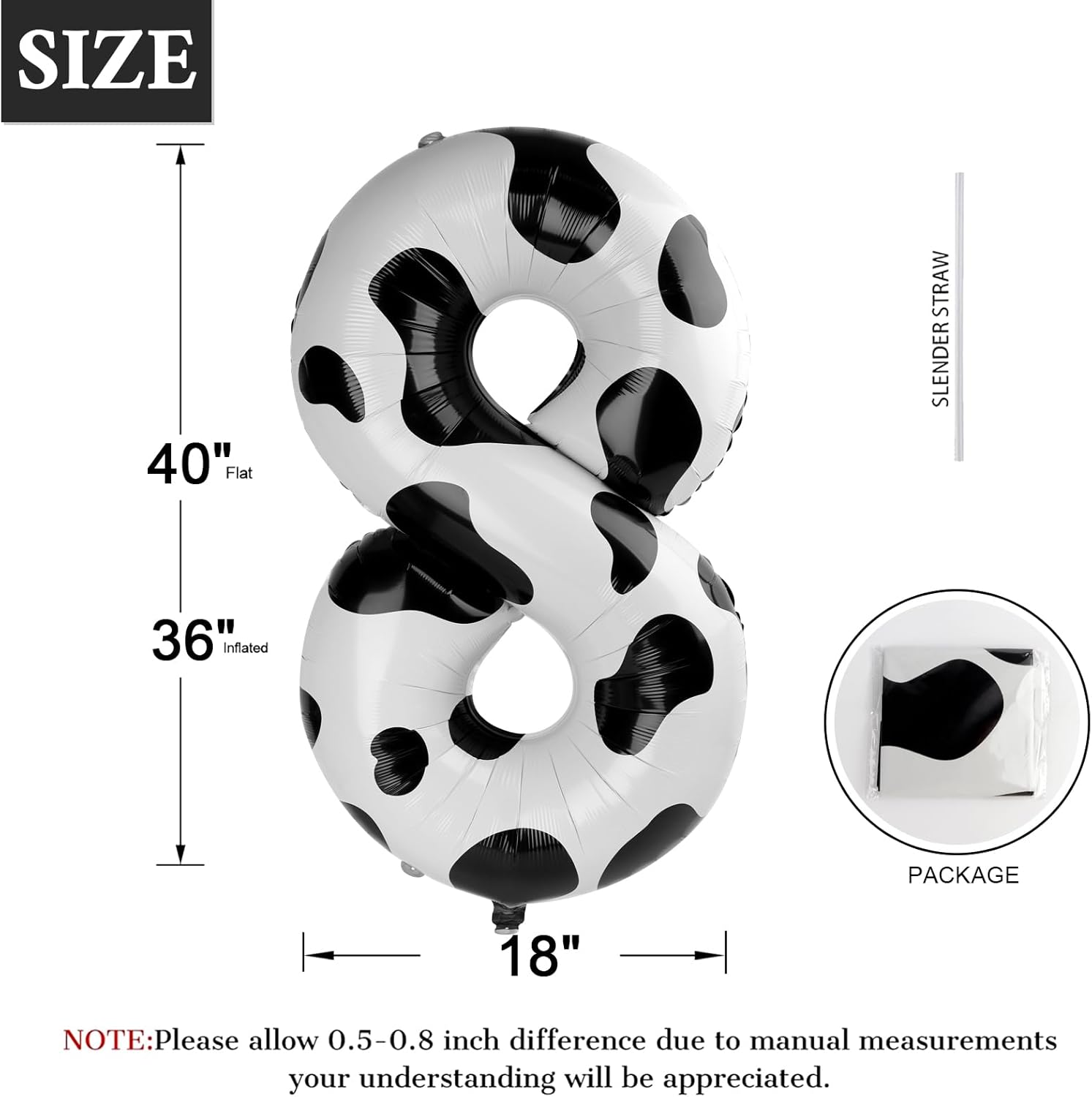 Cow Print Number Balloon Birthday Decorations, 40 inch Number balloon 0-9(Zero-Nine), Cow Balloon for Farm Birthday Party Supplies, Cow Themed birthday party Decorations (Number 8)
