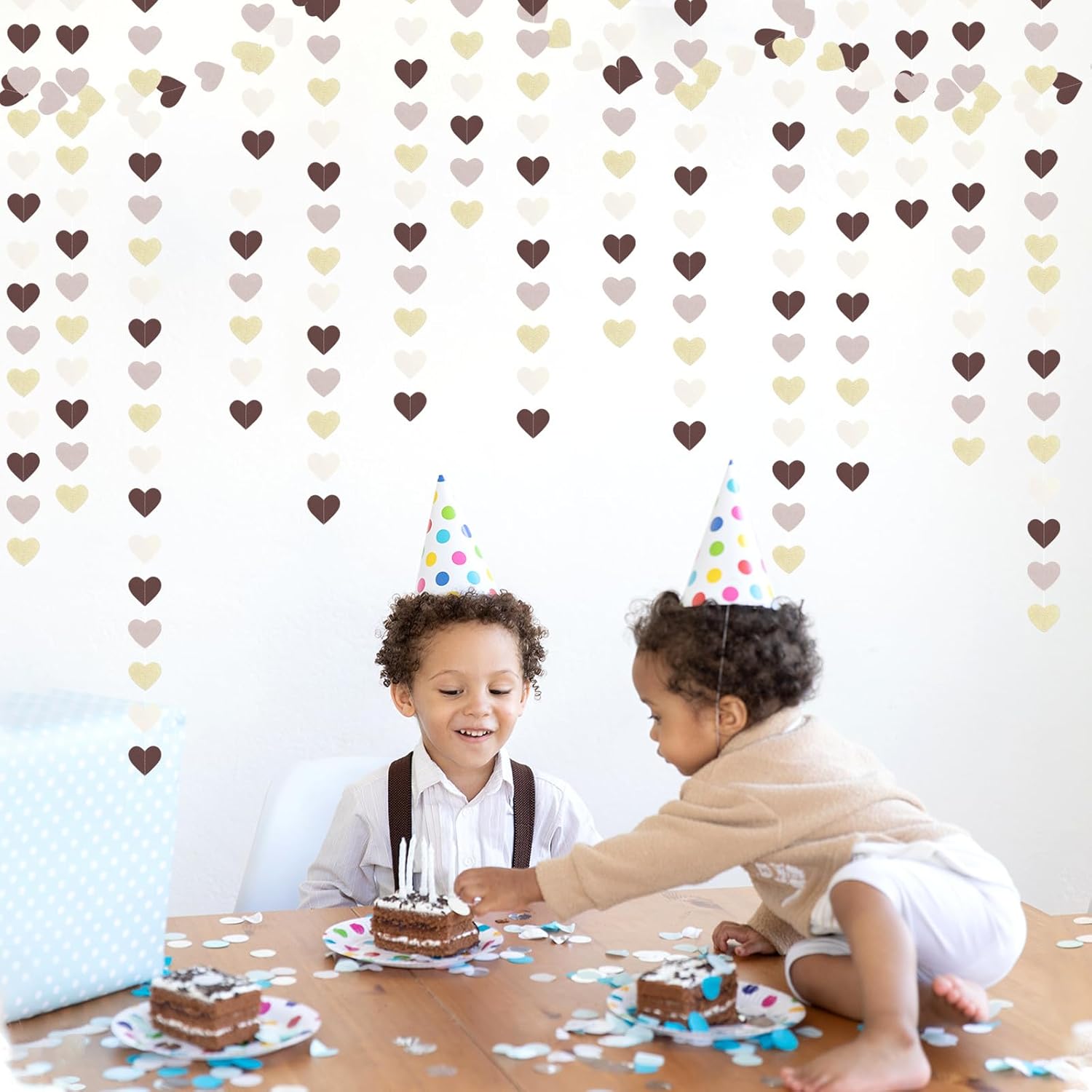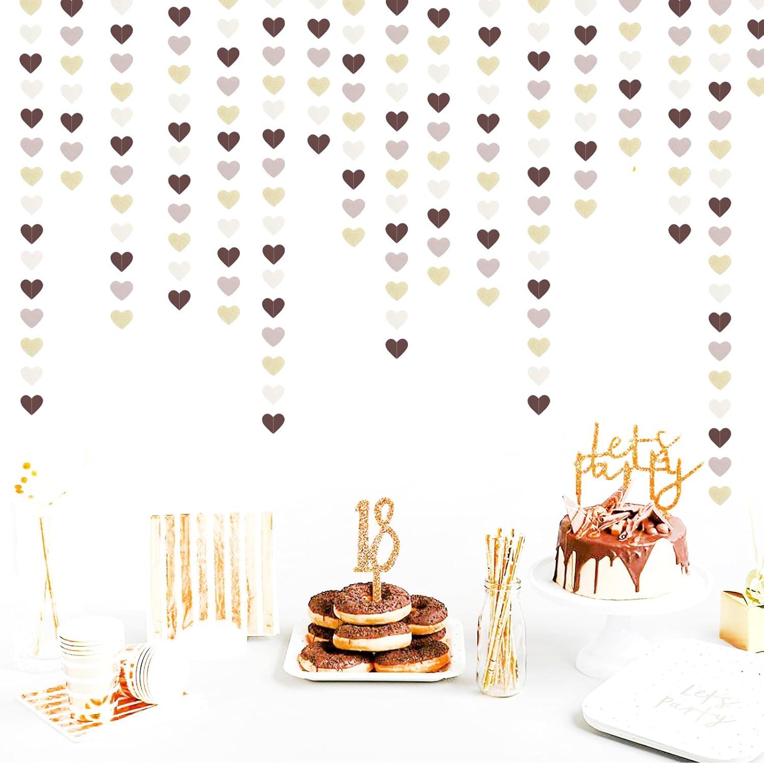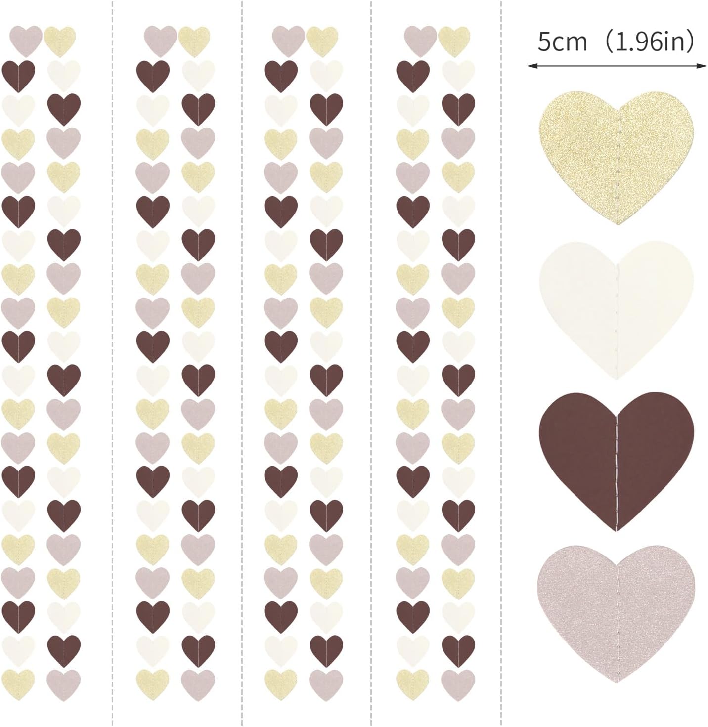• 【Material】The material is eco-friendly colorful paper,brown champagne, nude pink,beige.You can cut to any length you want if you need shorter length.The hearts are cut very neatly.
