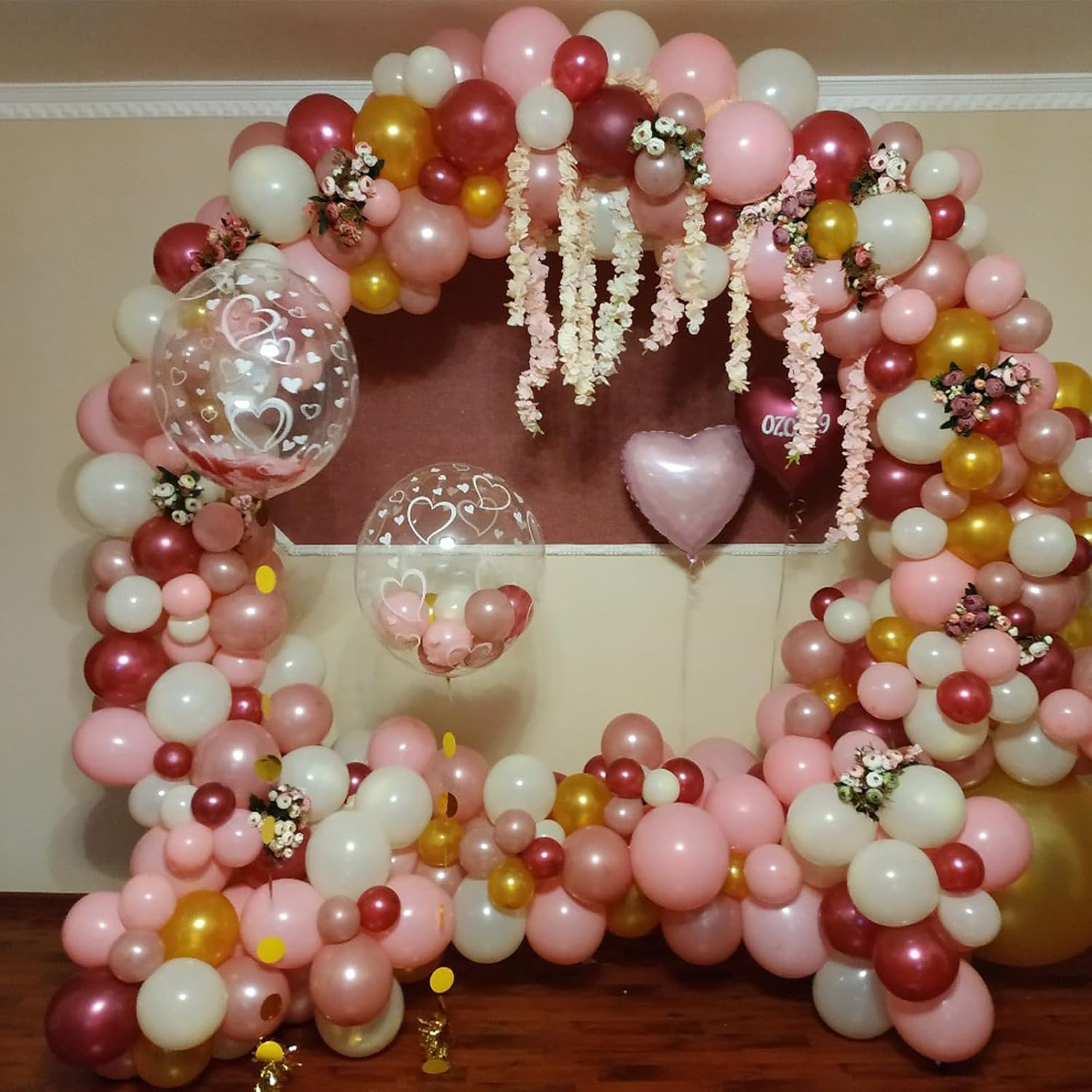 Burgundy Red and Pink Balloons, 60 Pack 12in Rose Gold Wine Red Light Pink White Latex Balloon Metallic Rosegold Confetti Helium Party Balloons for Women Girls Birthday Wedding Anniversary Decorations