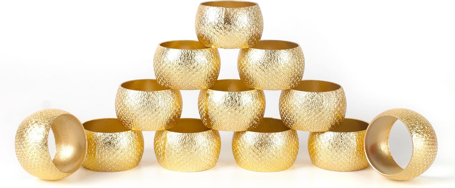 Gold Napkin Rings Set of 12 - Metal Heavy Duty Serviette Holders | Perfect for Dining Table, Weddings, Thanksgiving, Christmas & Everyday Use | Metallic Adornment for Table Setting- ALPHA Living HOME