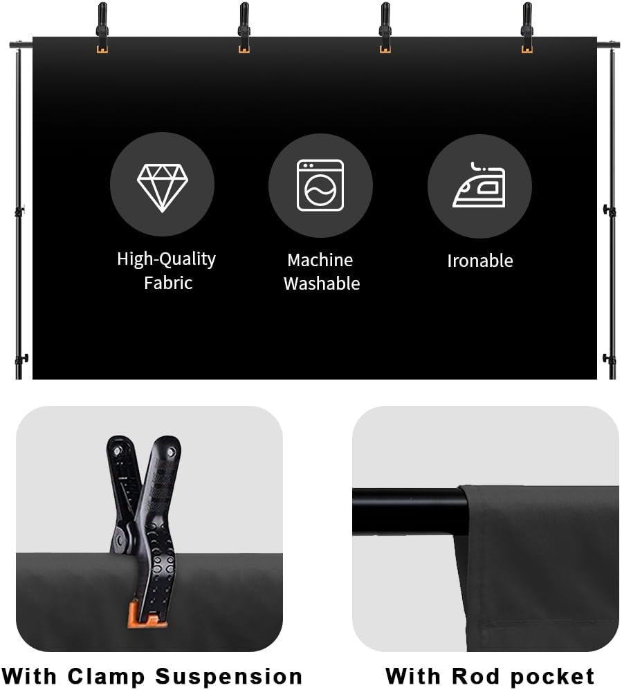 • 【PACKAGE INCLUD & WARRANTY】1pc 10x12ft black backdrop in package; Backdrop stand or Spring Clamp NOT included. 24-hour friendly customer service, 12 months after-sales quality assurance, please kindly contact us if any question.