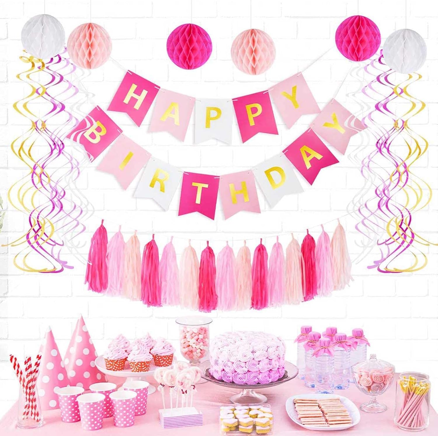 • Tissue Tassel Garland:The DIY steps in our detail picture,follow the DIY step you will get a beautiful paper tassels.Tassel kits, including dark pink 5 Pc, light pink 5 Pc,pink 5 Pc.Size:14 inch,per