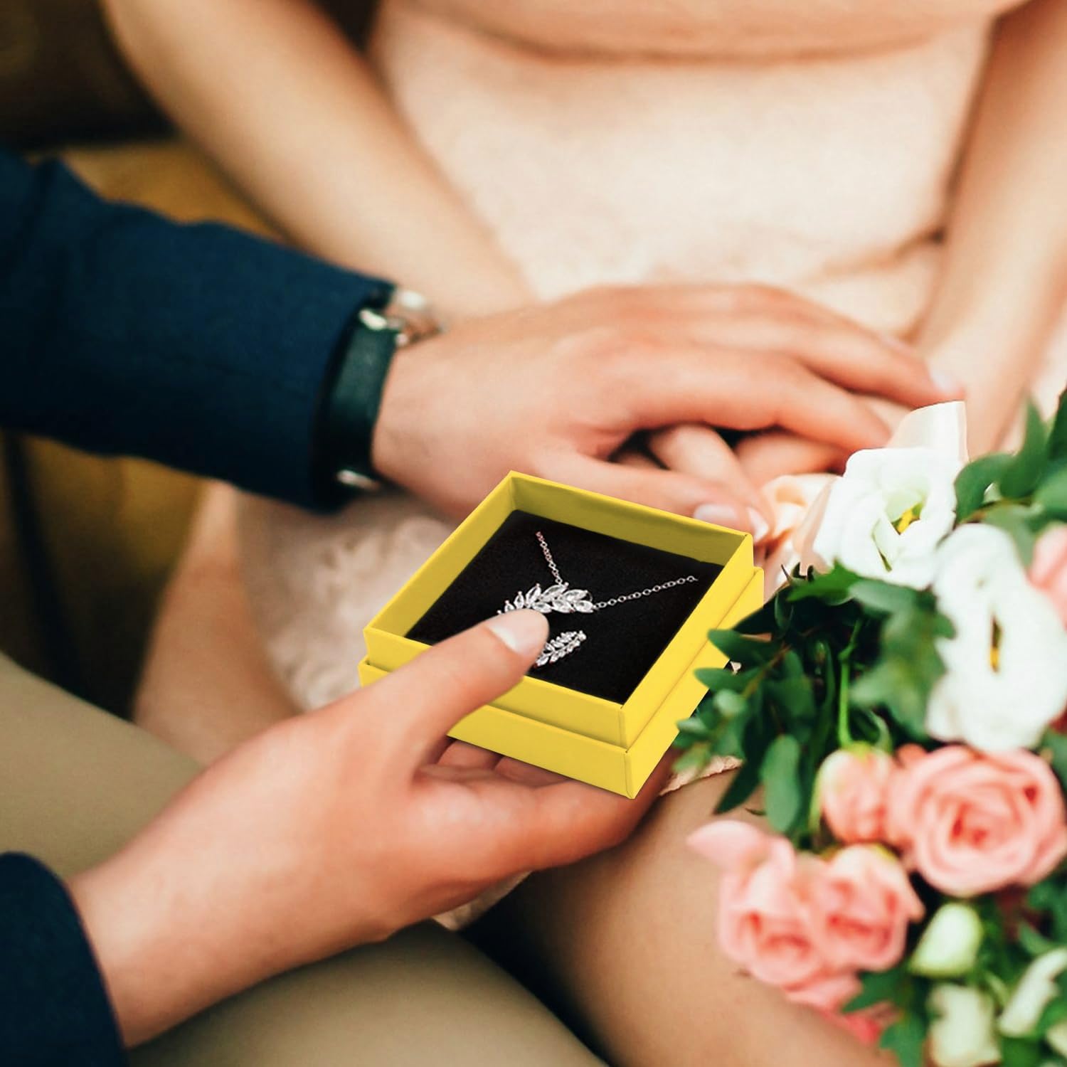 Gift Box Necklace Earring Ring Set, 12 Pieces Square Cardboard Jewelry Boxes, Cotton Filled Paper Case (3.5x3.5x1.25 Inches) (Yellow)
