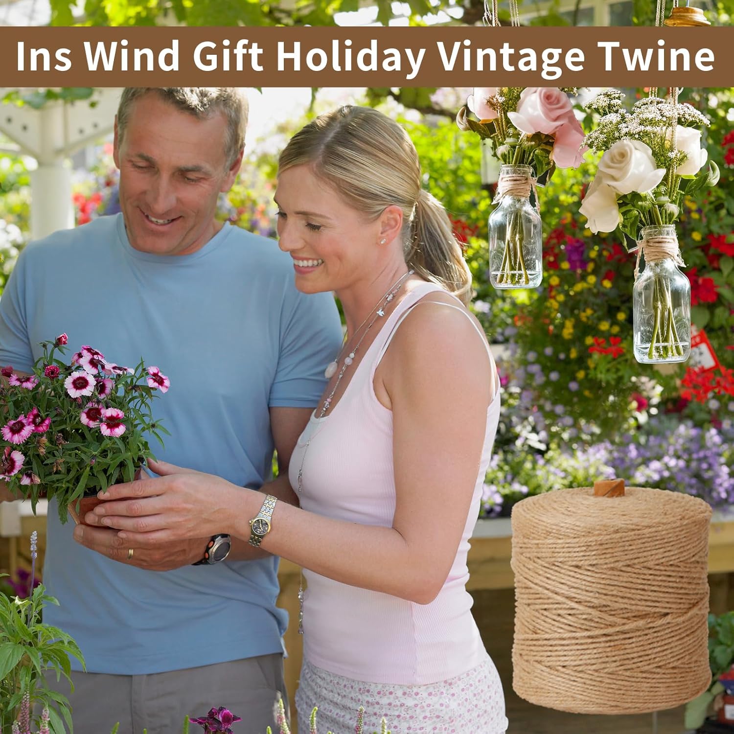 • ♥Φ 3mm 328ft Durable Jute Twine: Made of natural durable, eco-friendly jute fibers from the jute plant, making it biodegradable, renewable and environmentally friendly, a muted tone can help maintain the natural appearance of jute, and it is a very strong and adaptable material that lends itself to a variety of uses. 3mm jute rope that contains four strands is known for its high tensile strength and durability, making it ideal for heavy-duty applications like shipping, packaging.